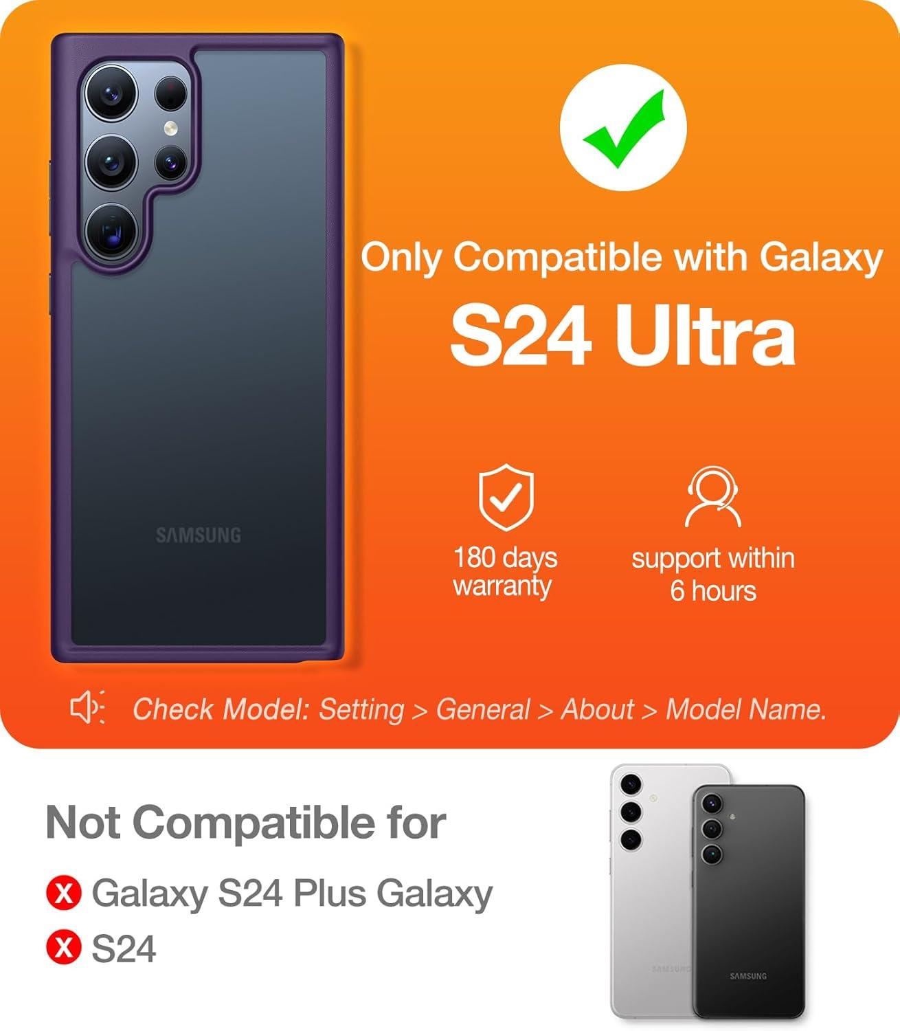 TORRAS Diamond Clear Designed for Samsung Galaxy S24 Ultra Case, 12FT Military Grade Drop Tested, Never Yellowing, Hard Back Soft Edge Slim Thin Shockproof Phone Case for Galaxy S24 Ultra 6.8″, Clear(Purple)