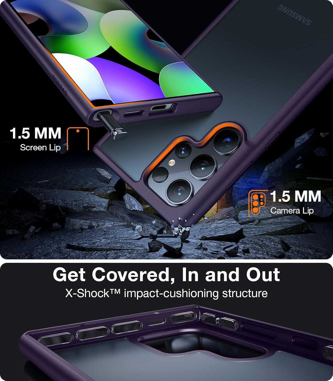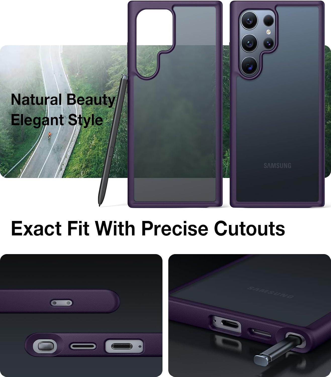 TORRAS Shockproof Compatible for Samsung Galaxy S21 Ultra Case, [Military Grade Drop Tested] S21 Ultra Case, Translucent Matte Hard Back with Soft Edge Slim Thin Galaxy S21 Ultra Case, Matte Black(Purple)