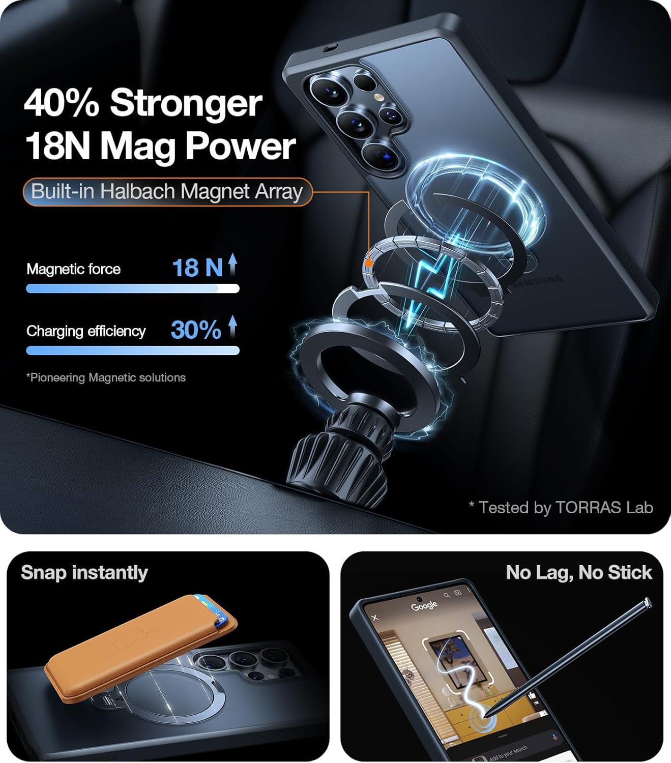 TORRAS 360°Spin Magnetic Stand for Samsung Galaxy S24 Ultra Case, Compatible with Magsafe, Shockproof Military Grade Protective Slim Galaxy S24 Ultra Phone Case with Kickstand & Ring Holder, Purple(Translucent Frosted Black)