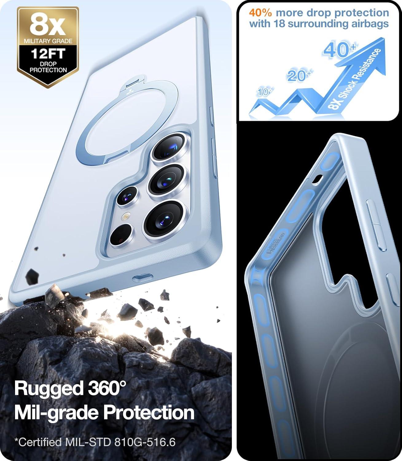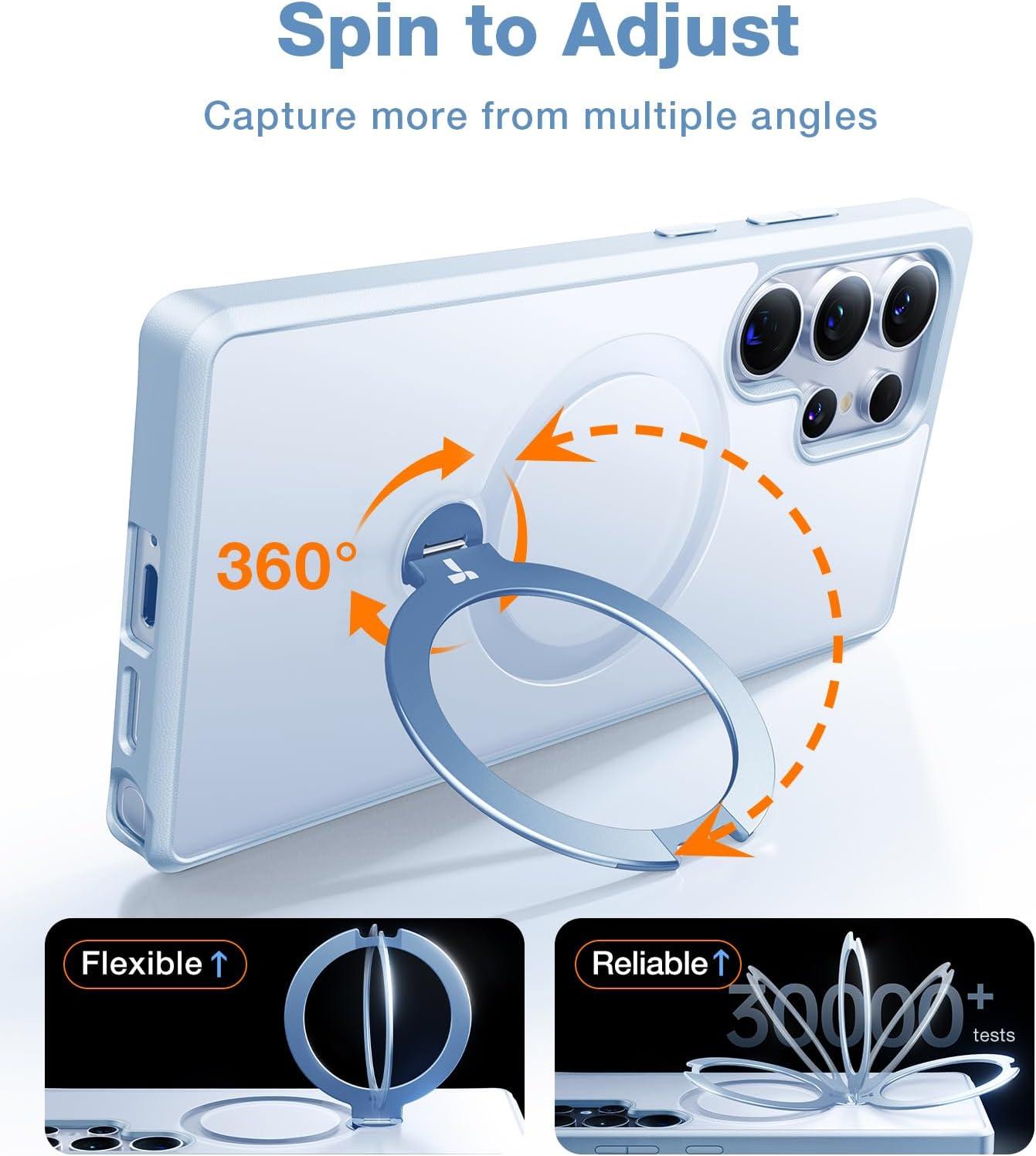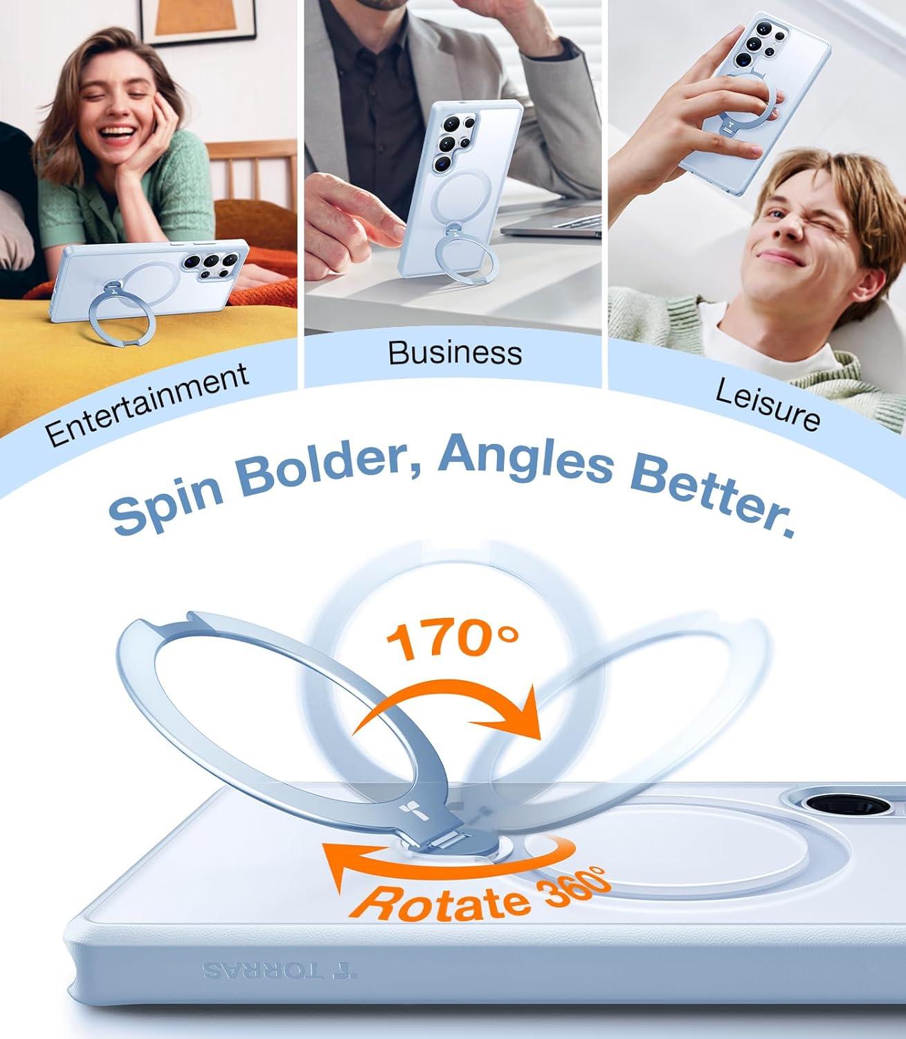 TORRAS 360°Spin Magnetic Stand for Samsung Galaxy S24 Ultra Case, Compatible with Magsafe, Shockproof Military Grade Protective Slim Galaxy S24 Ultra Phone Case with Kickstand & Ring Holder, Purple(Translucent Frosted Silverblue)