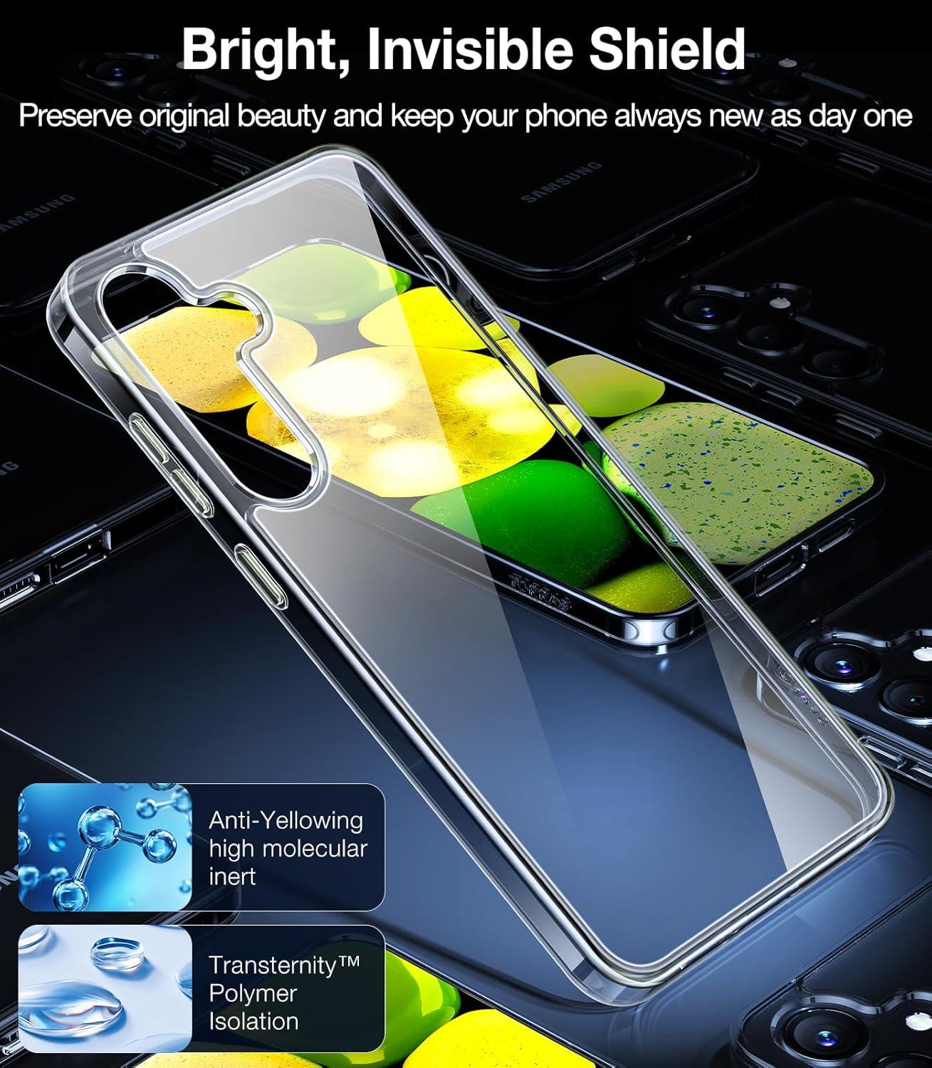 TORRAS 360°Spin Magnetic Stand for Samsung Galaxy S24 Ultra Case, Compatible with Magsafe, Shockproof Military Grade Protective Slim Galaxy S24 Ultra Phone Case with Kickstand & Ring Holder, Purple(Transparent Clear)