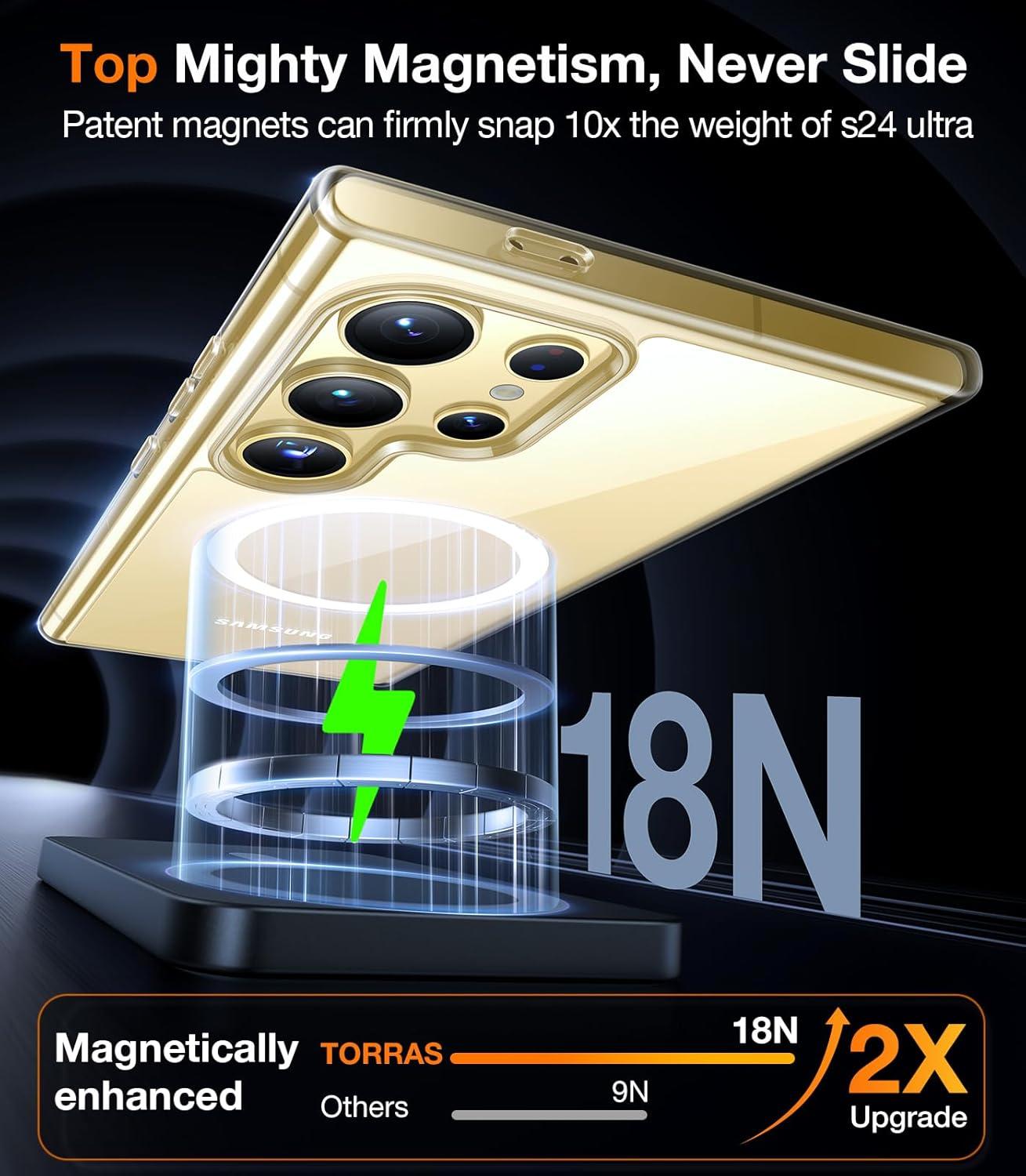 TORRAS Magnetic Shockproof for Samsung Galaxy S25 Ultra Case, Fit for MagSafe, 4X Military Grade Protection, Translucent Slim Case for Samsung S25 Ultra Case Anti-Fingerprint Anti-Scratch, Black(Clear)