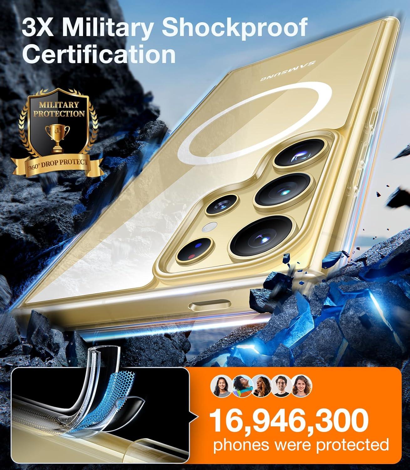 TORRAS Magnetic Shockproof for Samsung Galaxy S25 Ultra Case, Fit for MagSafe, 4X Military Grade Protection, Translucent Slim Case for Samsung S25 Ultra Case Anti-Fingerprint Anti-Scratch, Black(Black)
