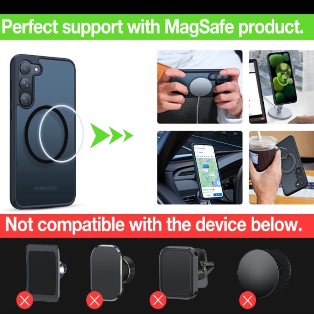 TORRAS Magnetic Guardian Only for Samsung Galaxy S23 Case 6.1″, [Military Grade Drop Tested] [Compatible with MagSafe] Semi-Clear Hard Back & Soft Edge Slim PC & TPU S23 Case 6.1 Inch, Black(Navy Blue)