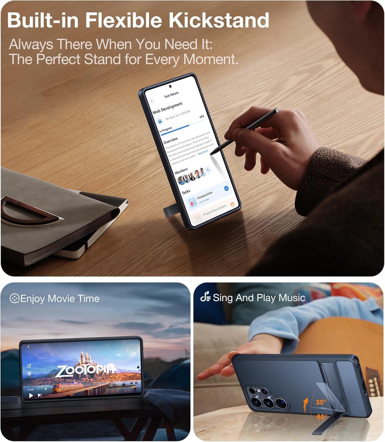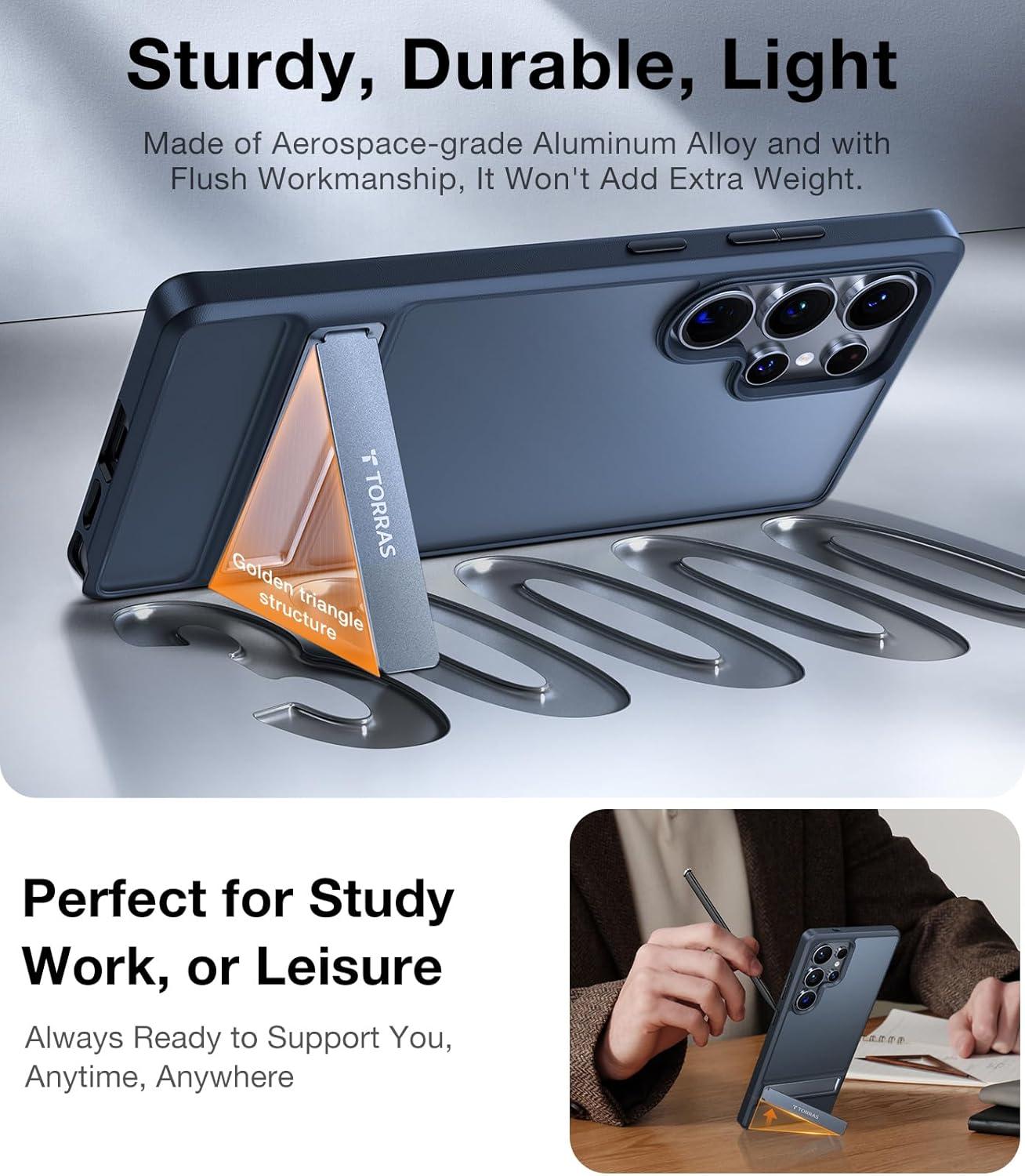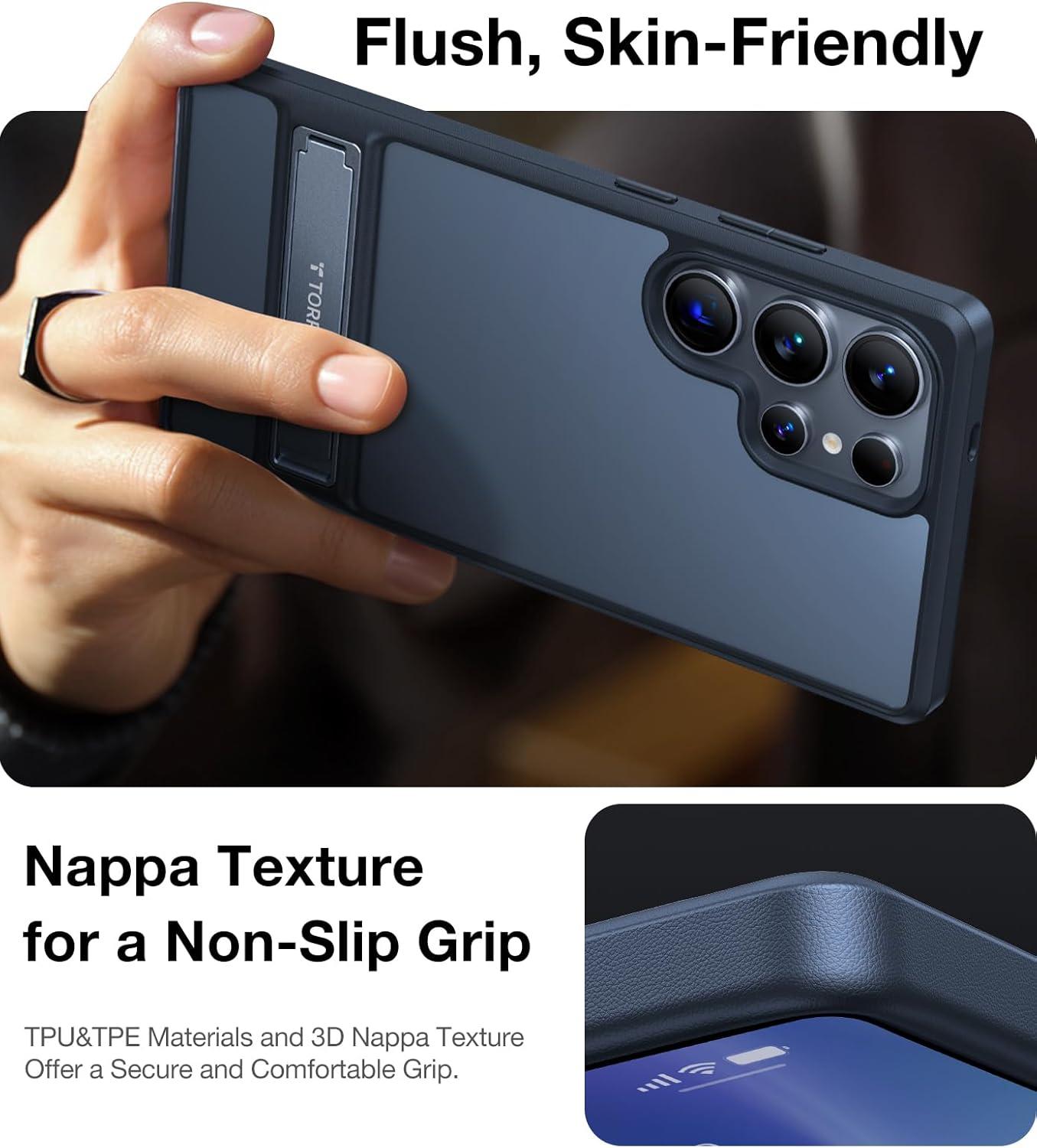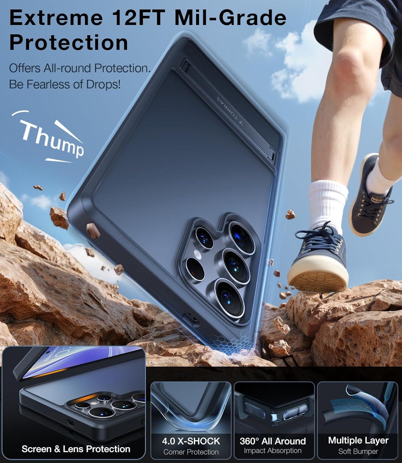 TORRAS for Samsung Galaxy S25 Ultra Case, [12FT Military-Grade Drop Protection] [Built-in Slim Kickstand] Matte Shockproof Cover for S25 Ultra Case, Sleek Grip Finish, Frosted Black