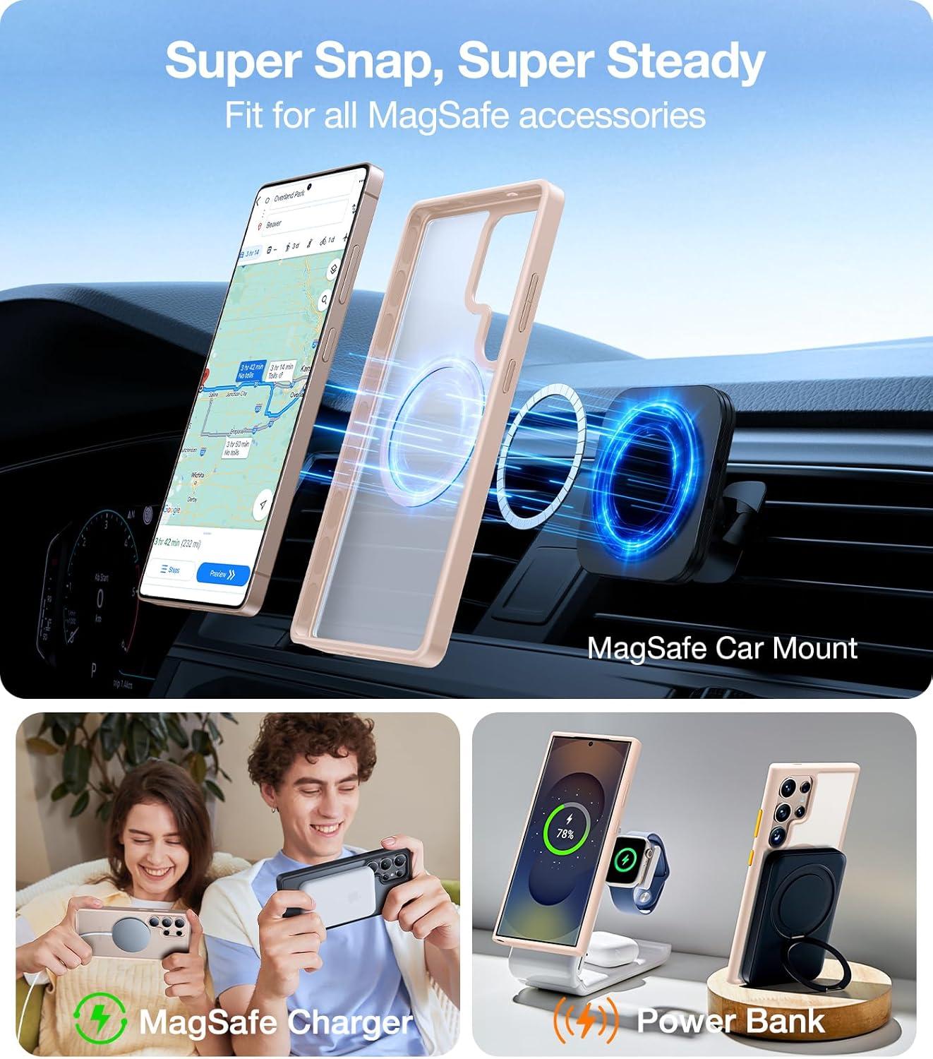 TORRAS Pale Apricot Magnetic for Galaxy S25 Ultra Case [Fit for Magsafe] Ring Stand, Shockproof Translucent Slim Protective Phone Cover for S25 Ultra, Apricot(Apricot)