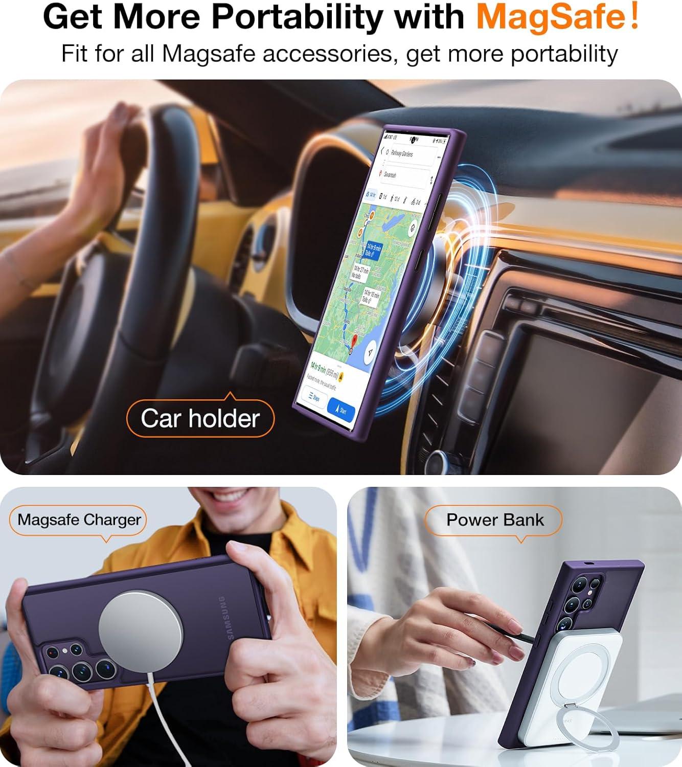 TORRAS Magnetic Shockproof for Samsung Galaxy S25 Ultra Case, Fit for MagSafe, 4X Military Grade Protection, Translucent Slim Case for Samsung S25 Ultra Case Anti-Fingerprint Anti-Scratch, Black(Purple)