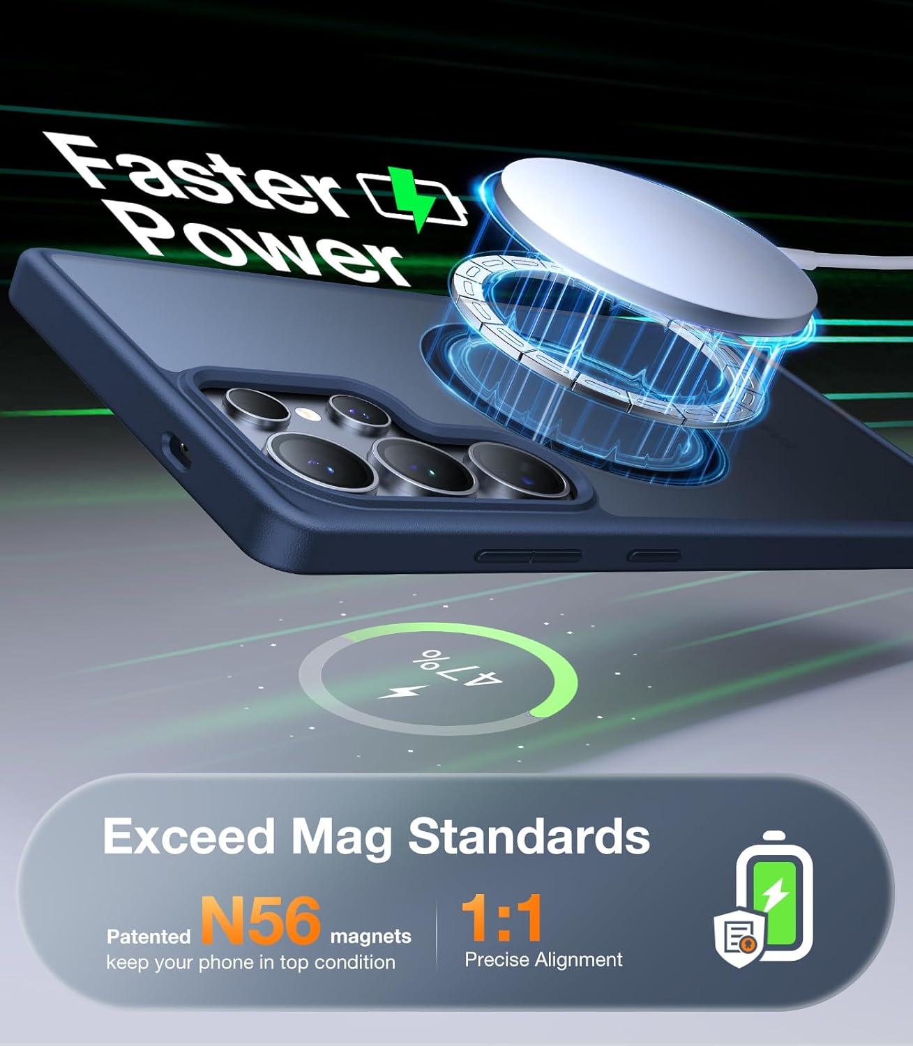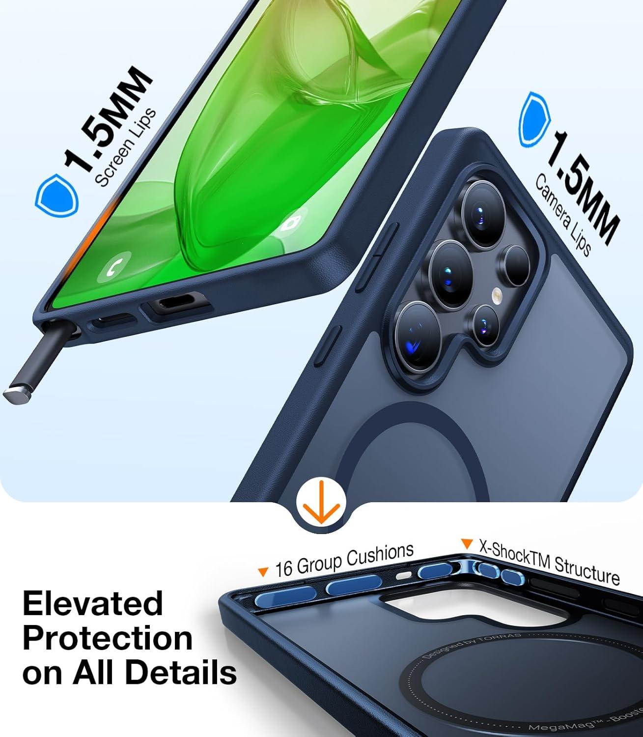 TORRAS Magnetic Shockproof for Samsung Galaxy S25 Ultra Case, Fit for MagSafe, 4X Military Grade Protection, Translucent Slim Case for Samsung S25 Ultra Case Anti-Fingerprint Anti-Scratch, Black(Navy Blue)