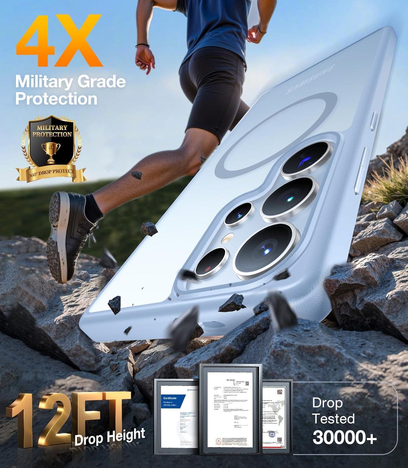 TORRAS Shockproof for Samsung Galaxy S25 Ultra Case, 12FT Military-Grade Protection, Slim Case for Samsung S25 Ultra Case, Matte Translucent Blue, Thin, Guardian Series(S25 Ultra-Clear)