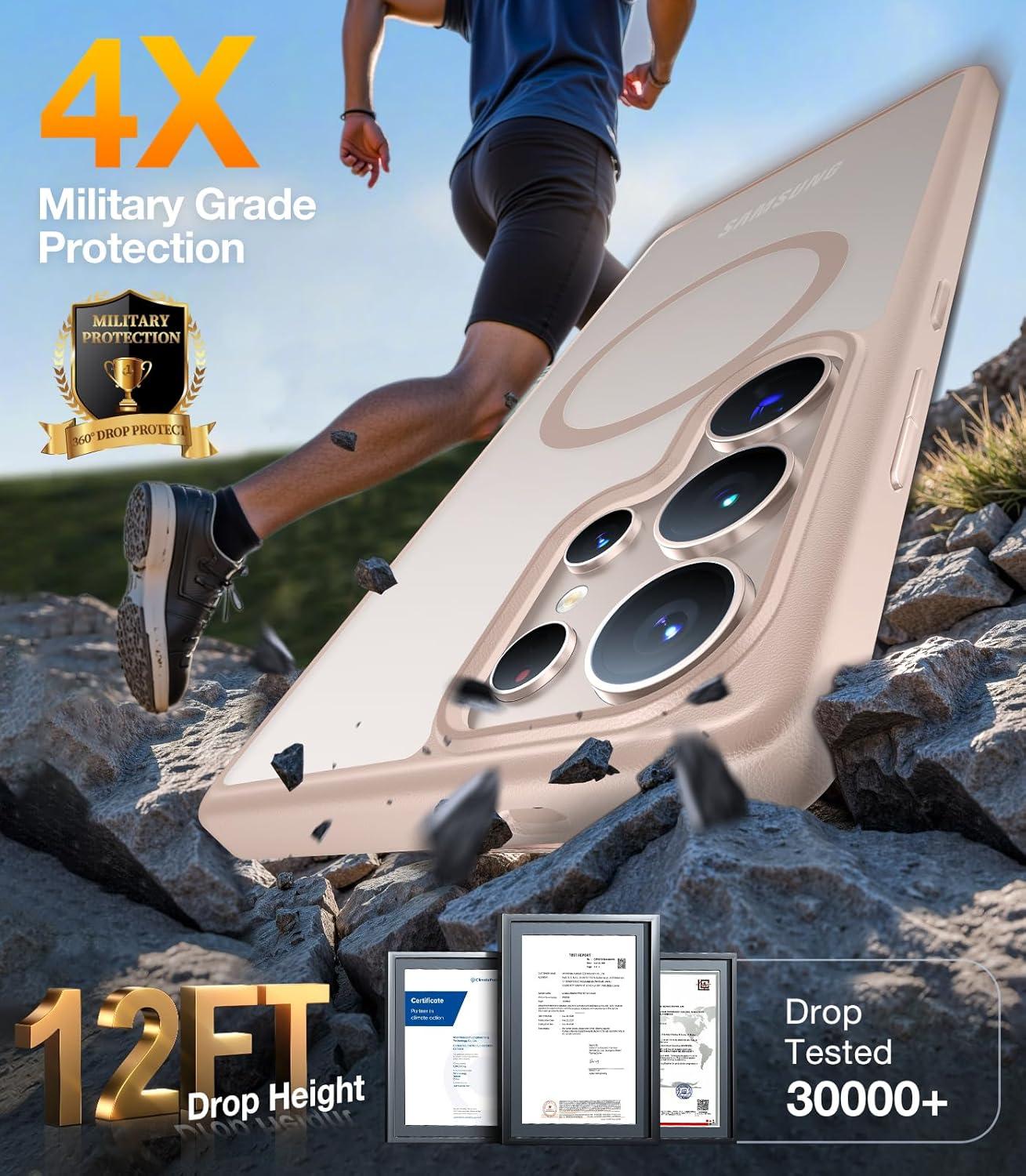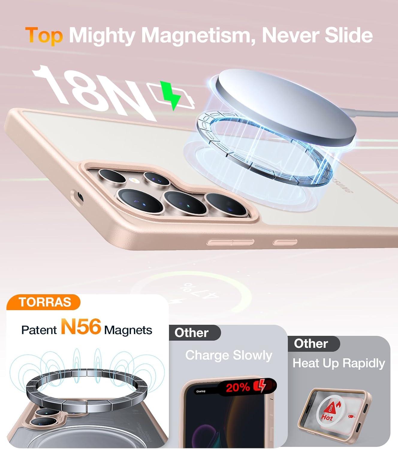 TORRAS Magnetic Shockproof for Samsung Galaxy S25 Ultra Case, Fit for MagSafe, 4X Military Grade Protection, Translucent Slim Case for Samsung S25 Ultra Case Anti-Fingerprint Anti-Scratch, Black(Titanium Pink Gold)