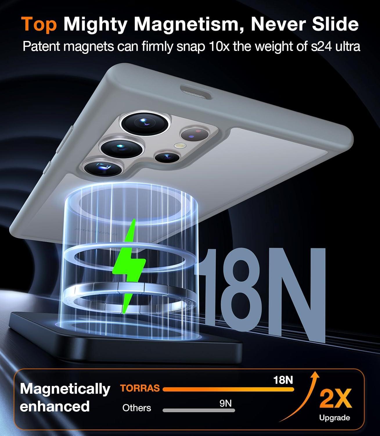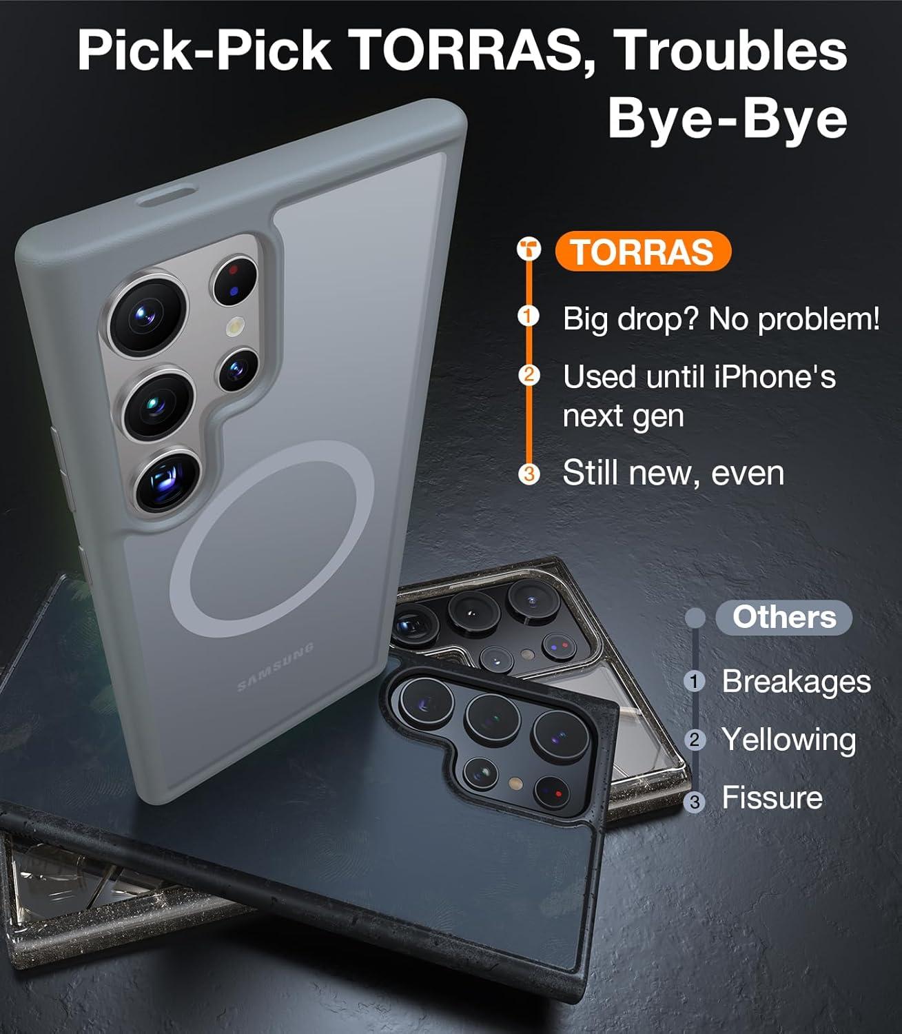 TORRAS Magnetic Shockproof for Samsung Galaxy S25 Ultra Case, Fit for MagSafe, 4X Military Grade Protection, Translucent Slim Case for Samsung S25 Ultra Case Anti-Fingerprint Anti-Scratch, Black(Light Gray)