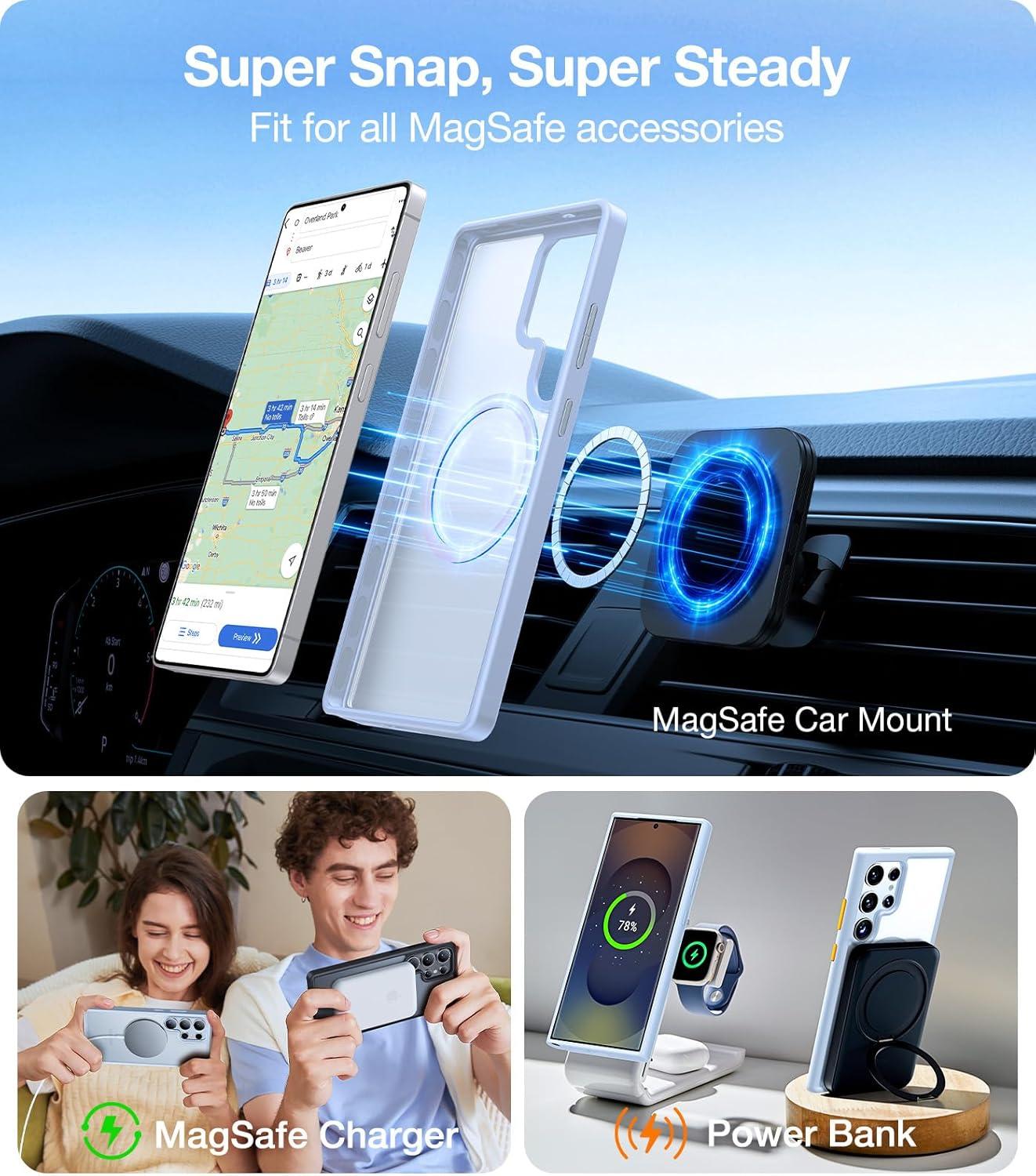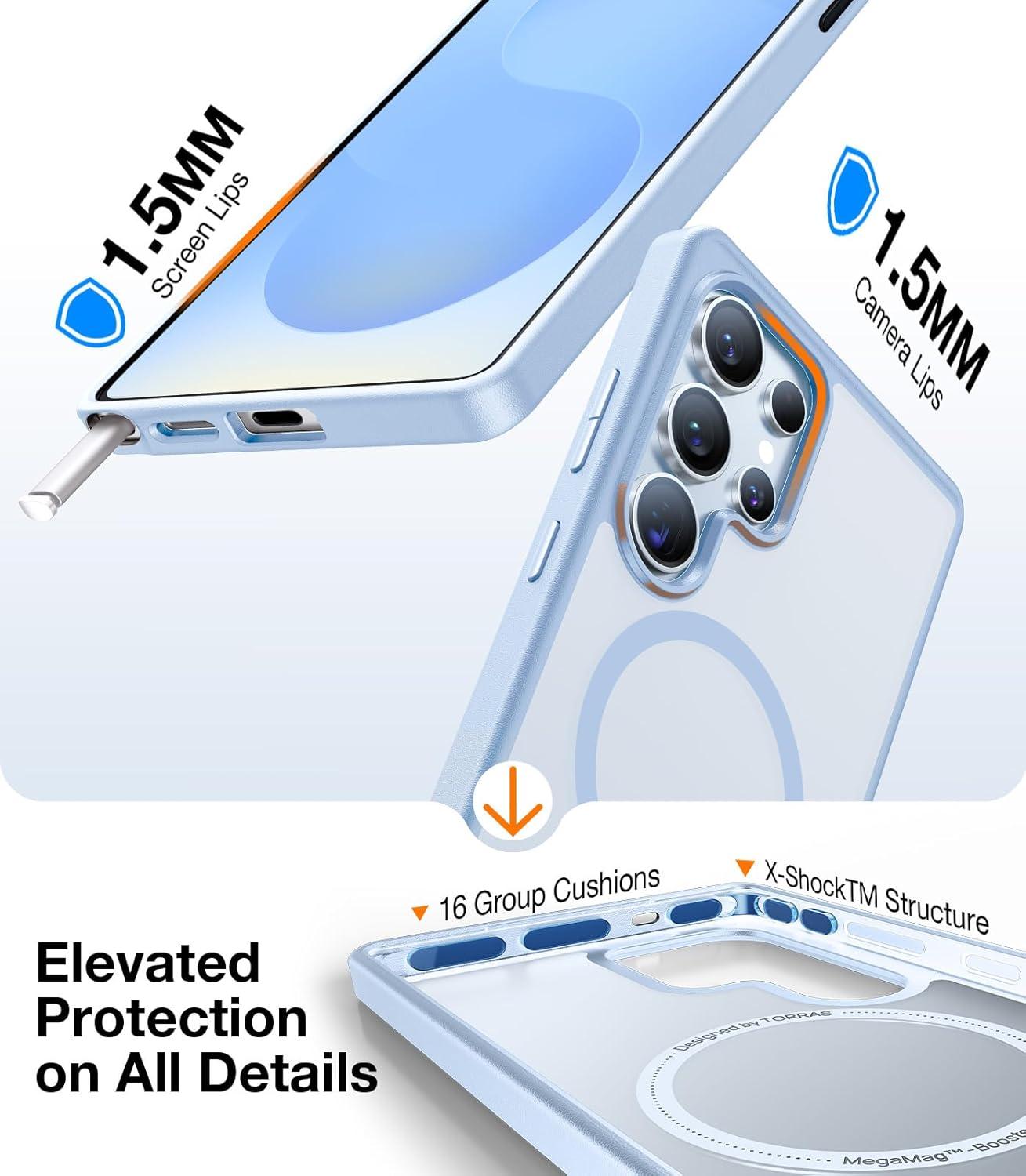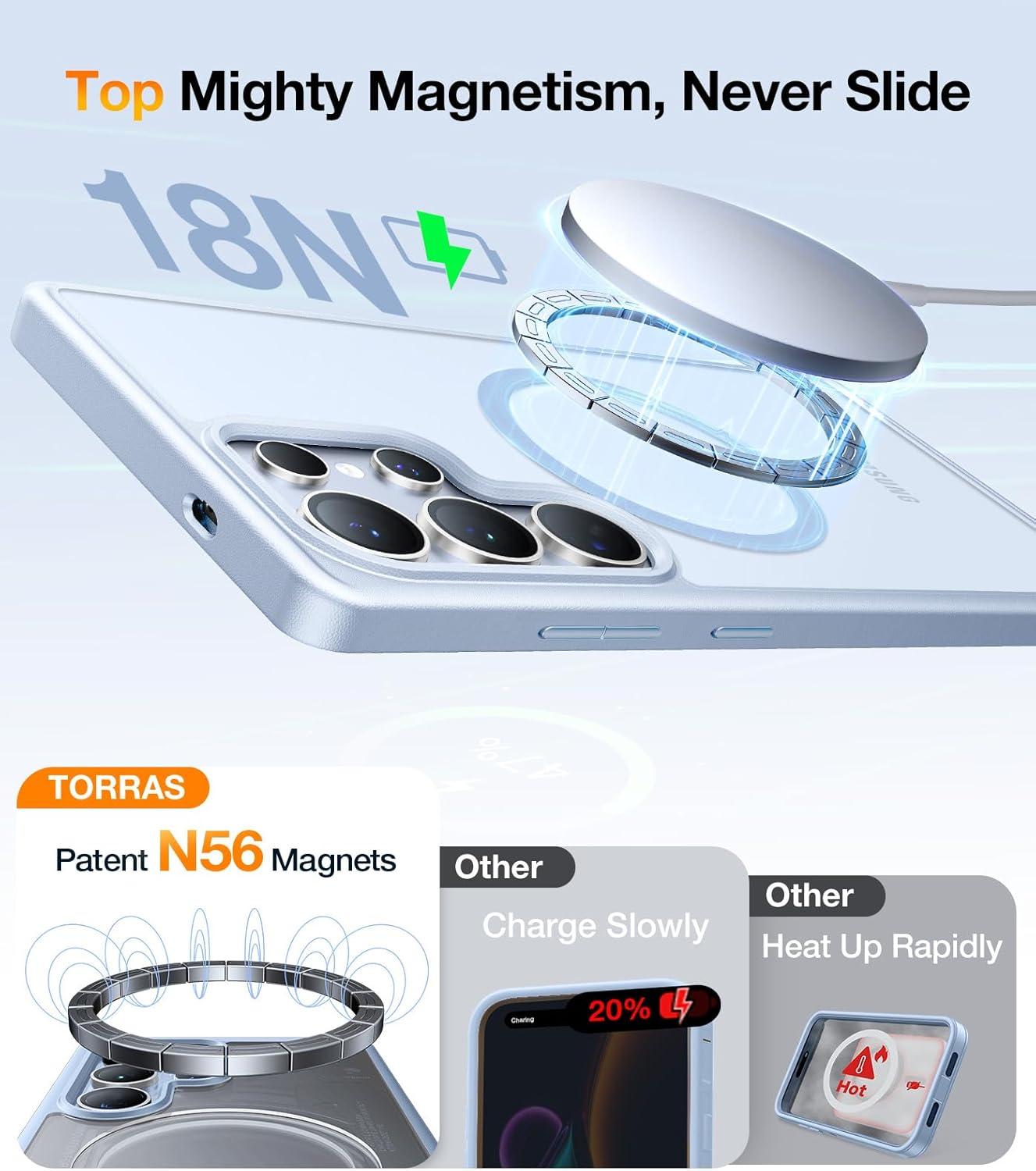 TORRAS Magnetic Shockproof for Samsung Galaxy S25 Ultra Case, Fit for MagSafe, 4X Military Grade Protection, Translucent Slim Case for Samsung S25 Ultra Case Anti-Fingerprint Anti-Scratch, Black(Silverblue)