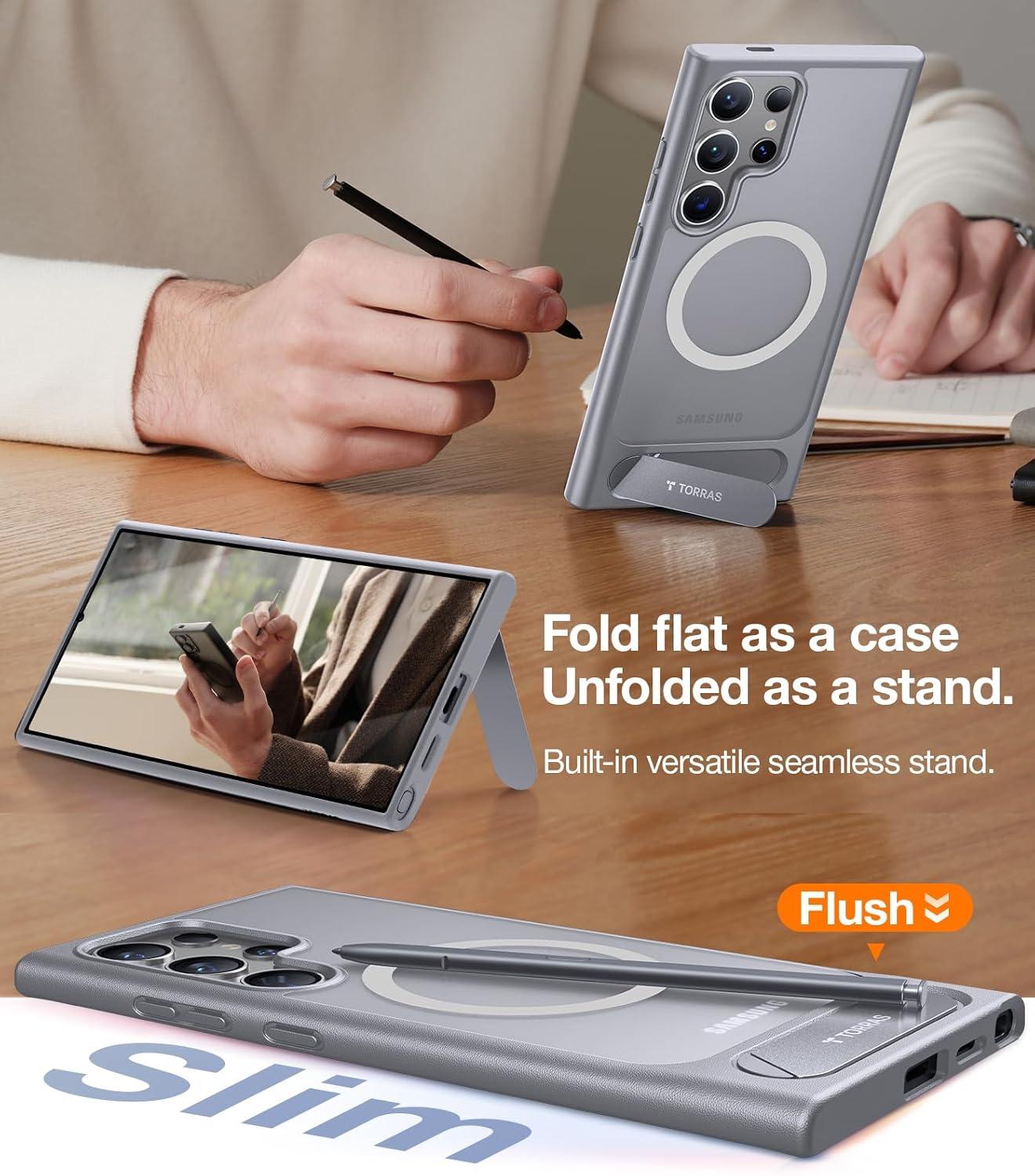TORRAS Strong Magnetic & Seamless Stand for Samsung Galaxy S25 Ultra Case, Fit for MagSafe, Mil-Grade Drop Protection, Kickstand for Samsung Galaxy S25 Ultra Case, Translucent Back/Black Edge(Gray)