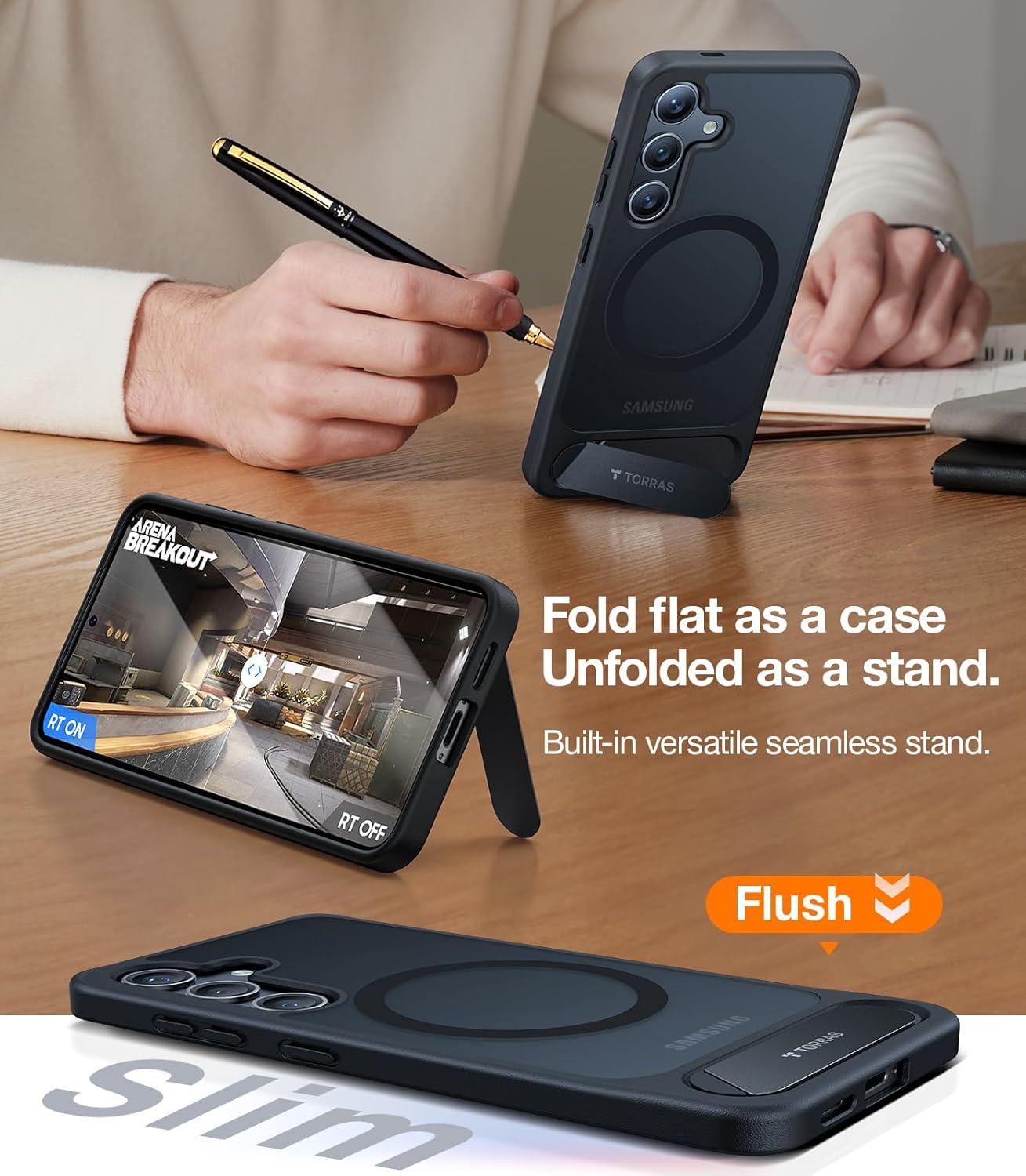 TORRAS Strong Magnetic & Seamless Stand for Samsung Galaxy S25 Ultra Case, Fit for MagSafe, Mil-Grade Drop Protection, Kickstand for Samsung Galaxy S25 Ultra Case, Translucent Back/Black Edge(Black)