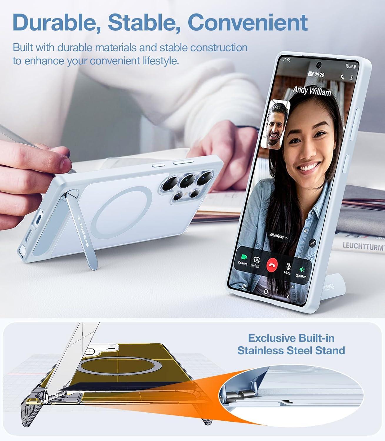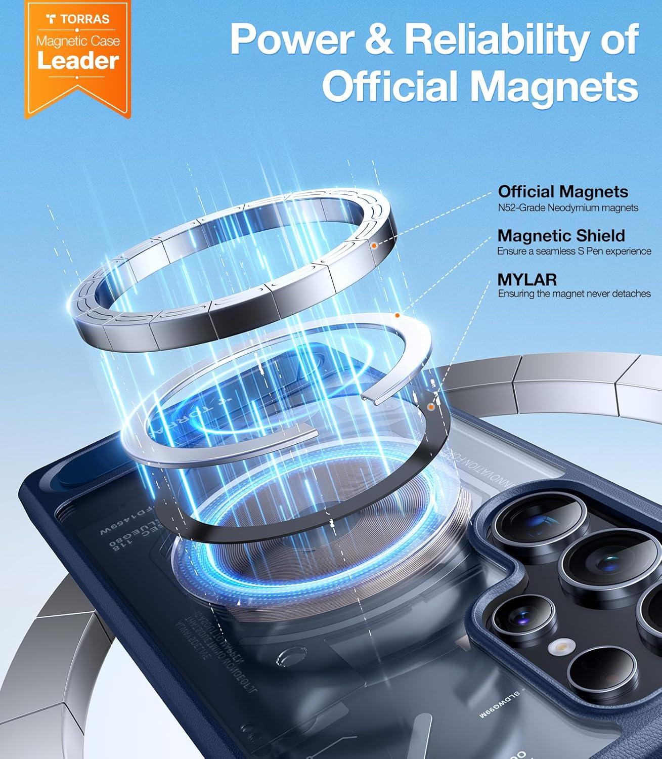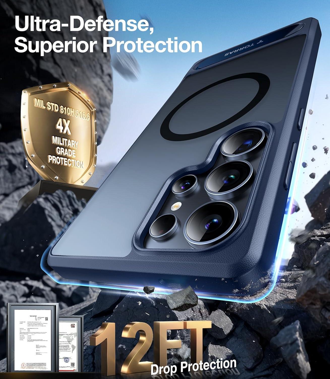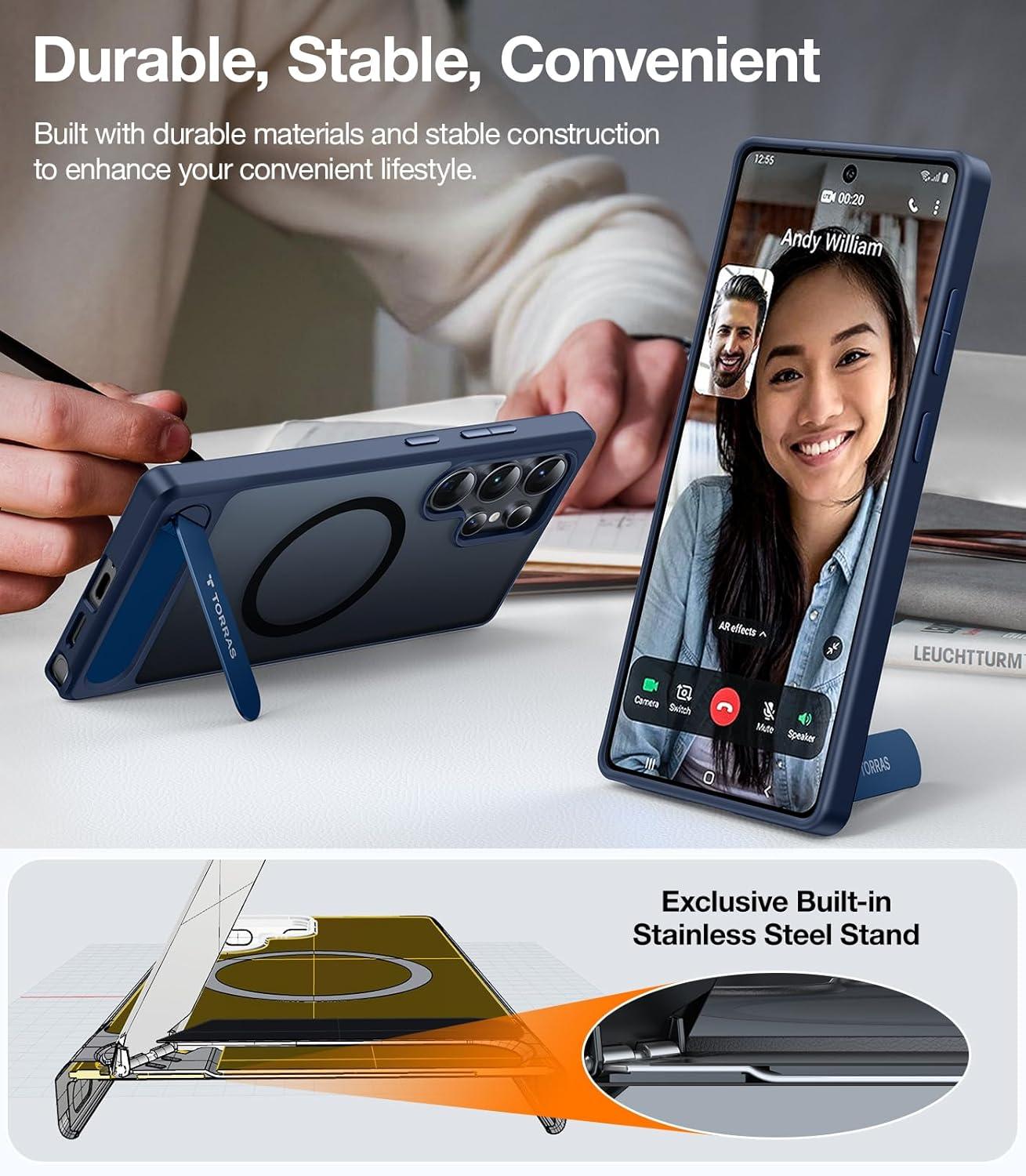 imageTORRAS Upgraded Magnetic amp Stand for Samsung Galaxy S25 Ultra Case Fit for Magsafe 12FT MilGrade Drop Protection Shockproof Translucent Slim for Samsung Galaxy S25 Ultra Case BlackNavy Blue
