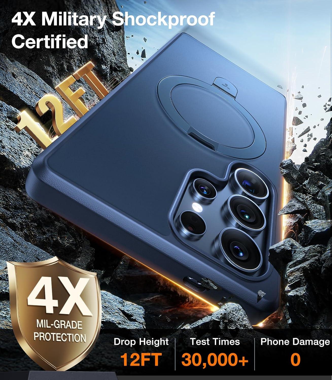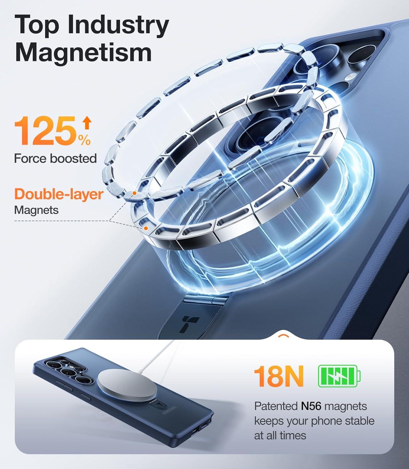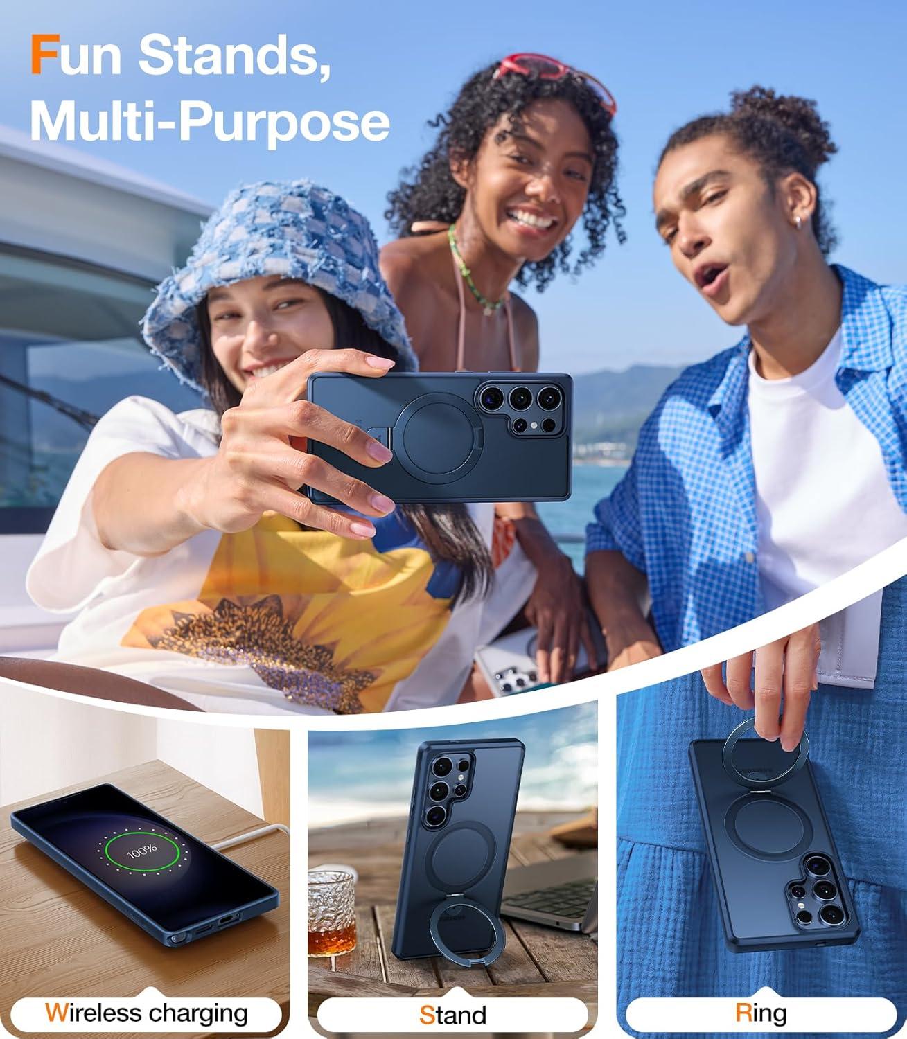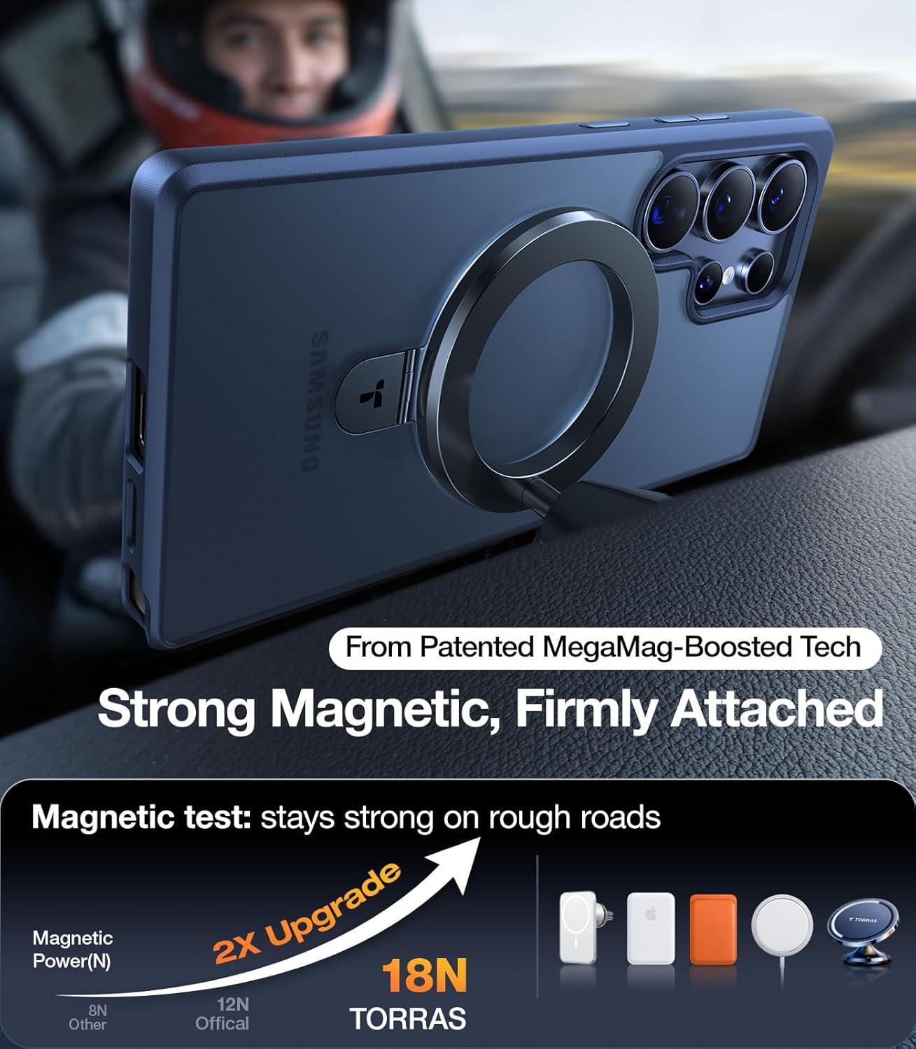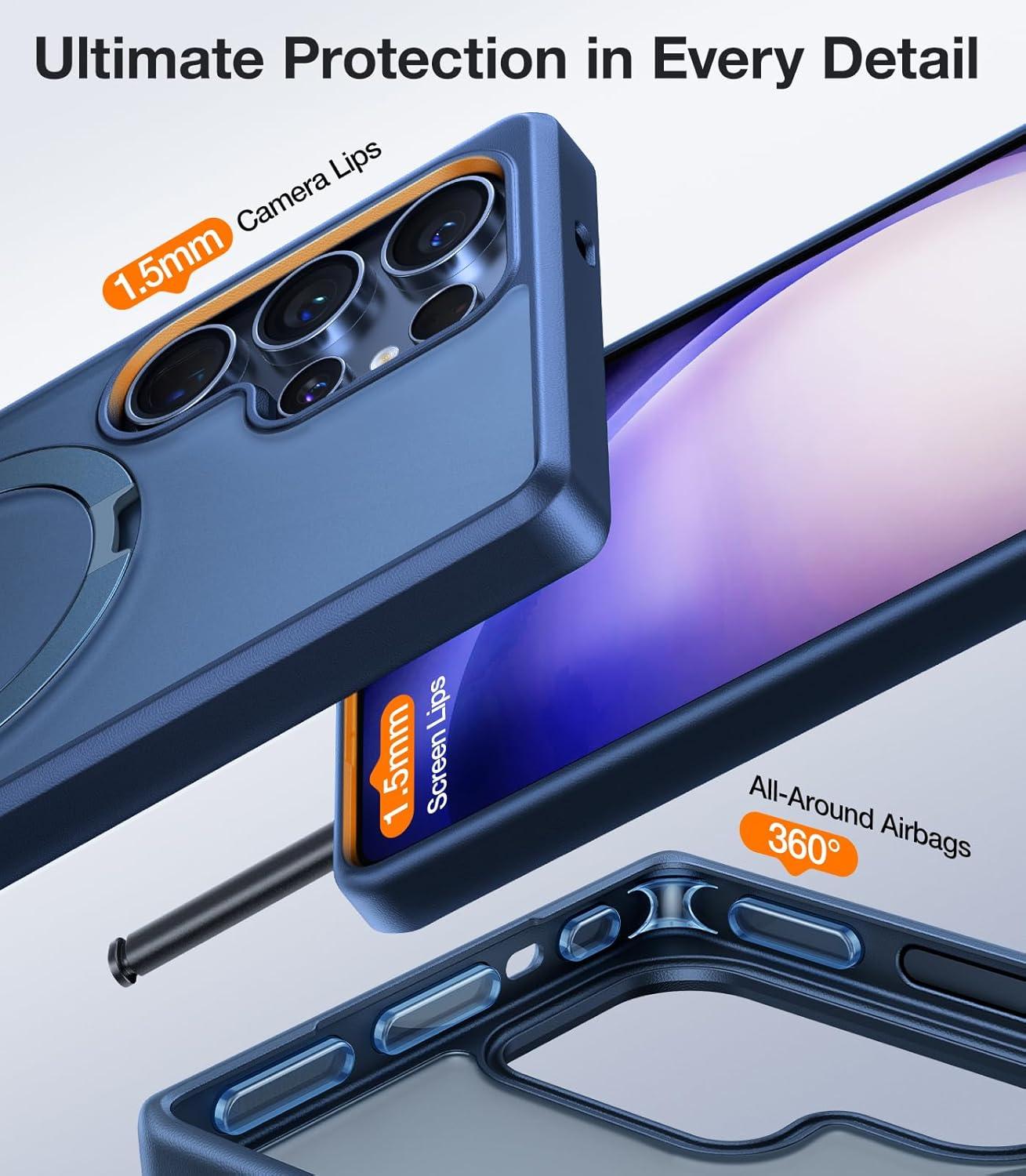 imageTORRAS Upgraded Magnetic amp Stand for Samsung Galaxy S25 Ultra Case Fit for Magsafe 12FT MilGrade Drop Protection Shockproof Translucent Slim for Samsung Galaxy S25 Ultra Case BlackNavy Blue