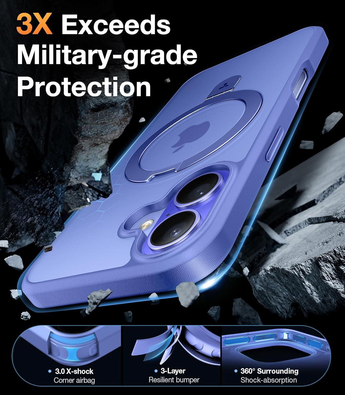 TORRAS Magnetic for iPhone 16 Case with Stand, Built-in Stand Compatible with MagSafe, 3X Military-Grade Protection, Translucent Slim Phone Case for iPhone 16 6.1”, Matte Blue(Lilac Purple)