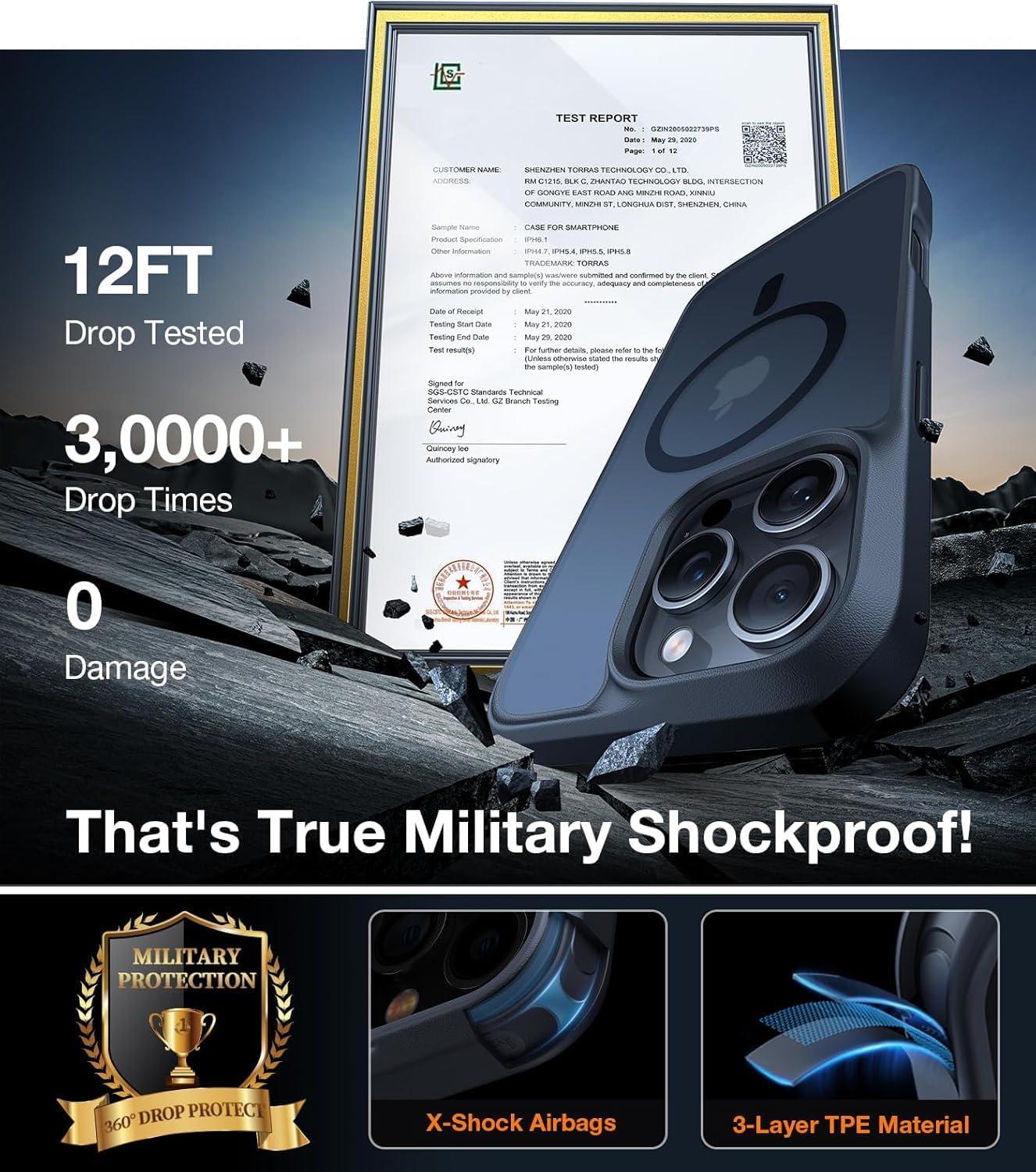 TORRAS Magnetic Guardian Designed for iPhone 14 Pro Max Case [Military Grade Drop Tested] [Compatible with MagSafe] Slim Translucent Matte Case for iPhone 14 Pro Max Phone Case 6.7″, Mystic Black(Black Full Camera)