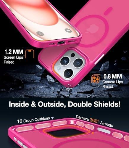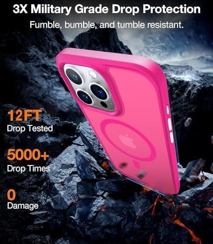 TORRAS Magnetic Guardian Designed for iPhone 14 Pro Max Case [Military Grade Drop Tested] [Compatible with MagSafe] Slim Translucent Matte Case for iPhone 14 Pro Max Phone Case 6.7″, Mystic Black(Hot Pink)