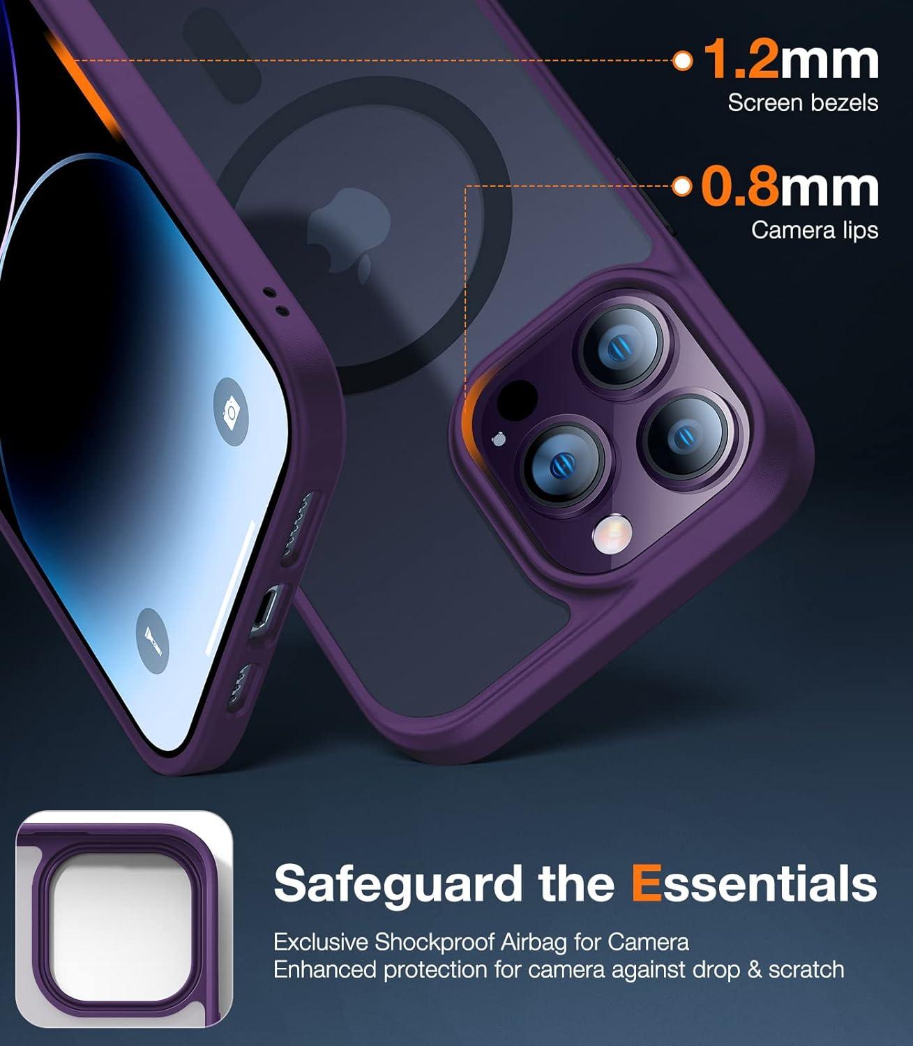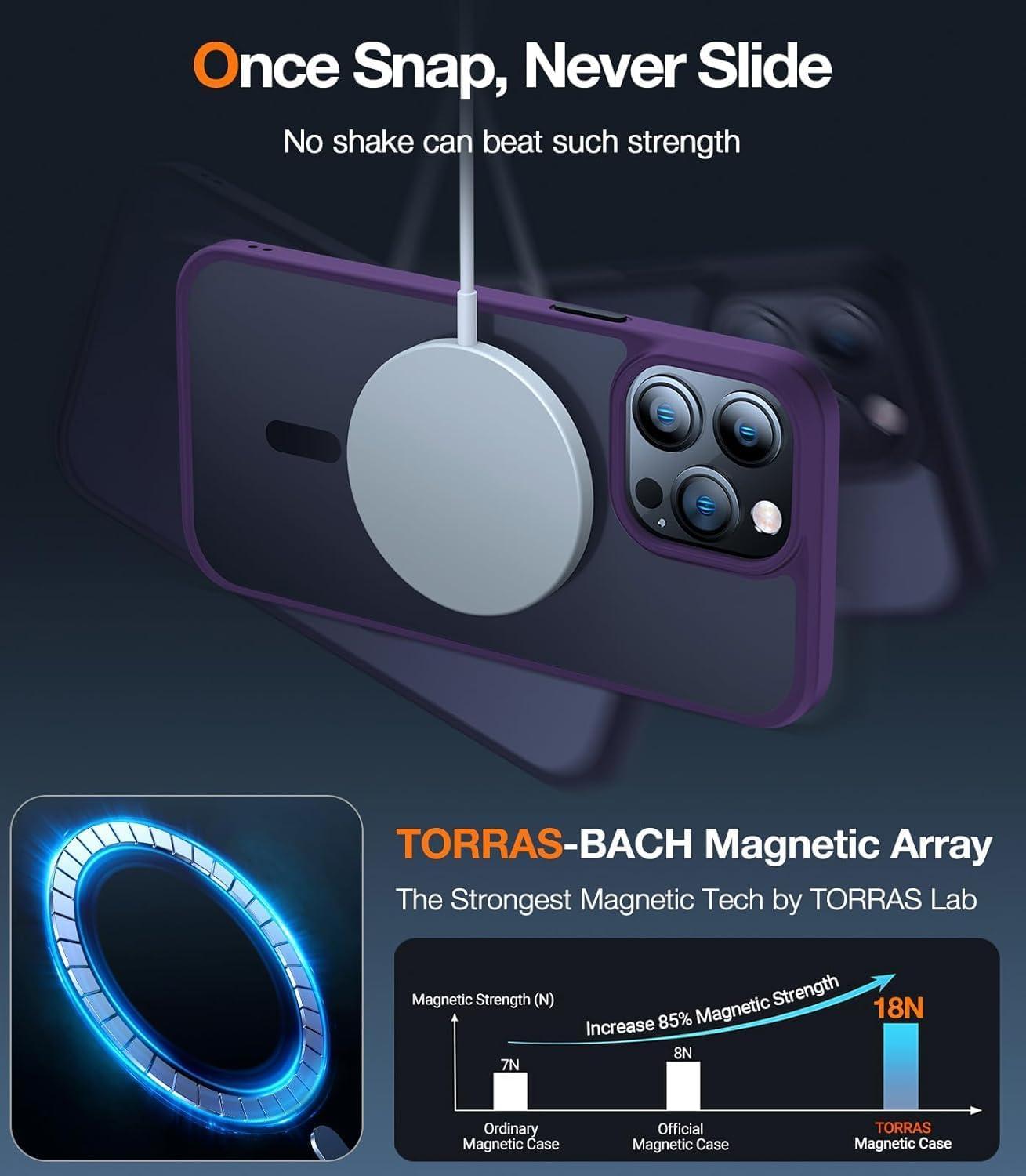 TORRAS Magnetic Guardian Designed for iPhone 14 Pro Max Case [Military Grade Drop Tested] [Compatible with MagSafe] Slim Translucent Matte Case for iPhone 14 Pro Max Phone Case 6.7″, Mystic Black(Purple)