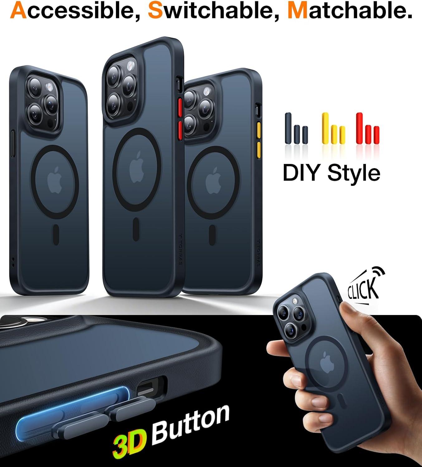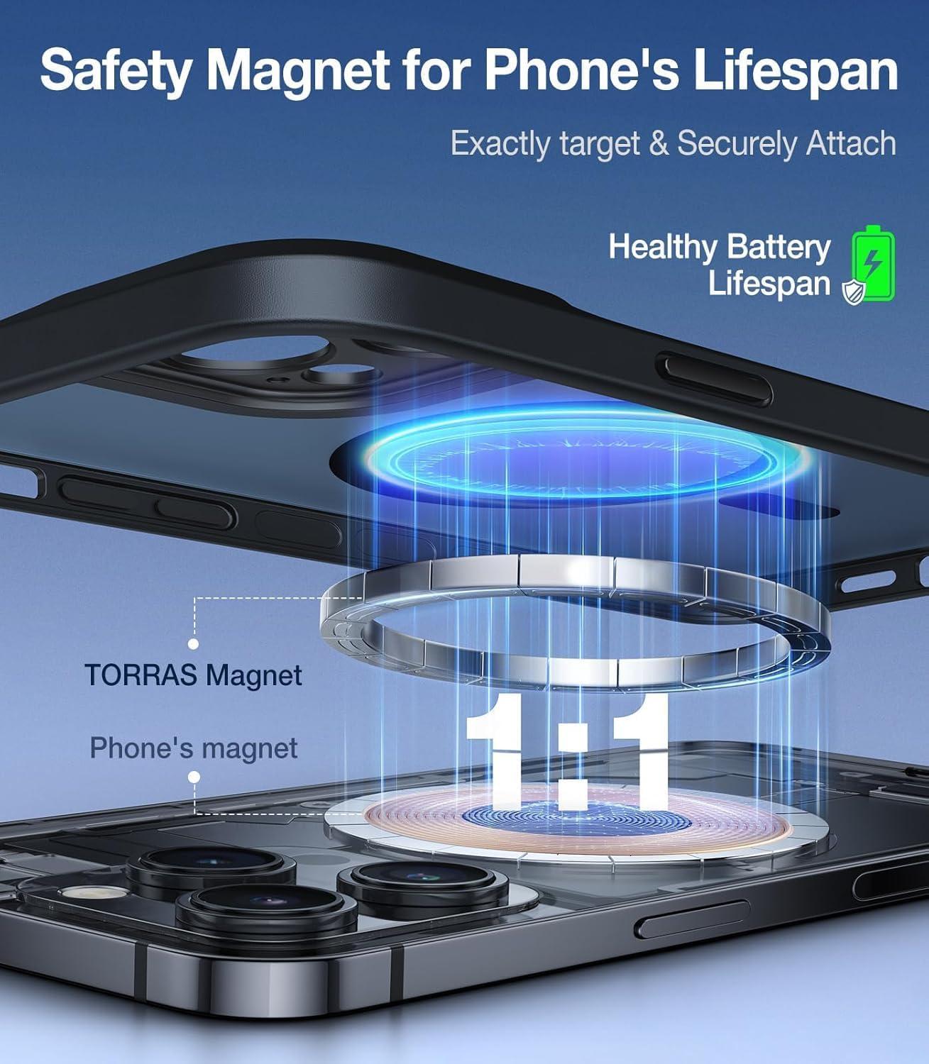 TORRAS Magnetic Guardian Designed for iPhone 14 Pro Max Case [Military Grade Drop Tested] [Compatible with MagSafe] Slim Translucent Matte Case for iPhone 14 Pro Max Phone Case 6.7″, Mystic Black(Black)