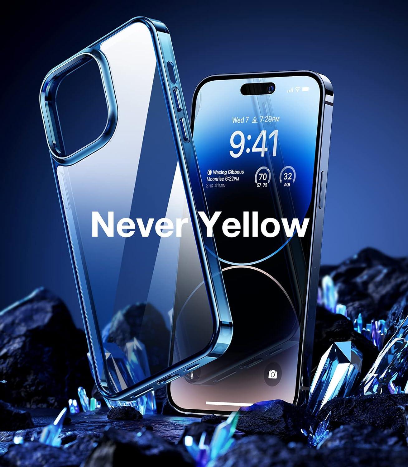 TORRAS Diamond Clear for iPhone 14 Pro Max Case, Anti-Yellowing, 12FTMil-Grade Drop Protection, Shockproof Slim Protective Hard Back Soft Bumper with Airbag for iPhone 14 ProMax Case, Crystal Clear