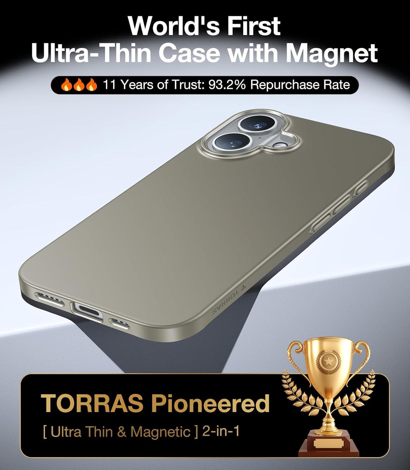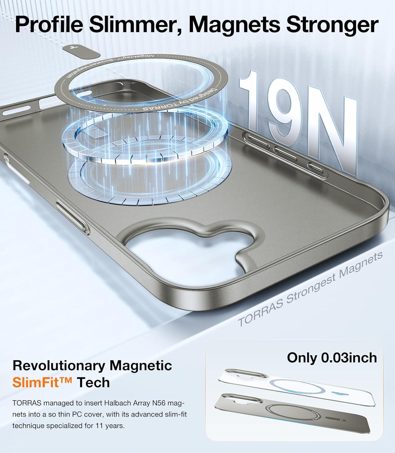 TORRAS Magnetic Slim-Fit for iPhone 16 Case 6.1 inch, Ultra-Thin 16 Phone Case Compatible with MagSafe Phone 16 Case, Light Anti-Scratch Matte Hard PC Bayer OriginFit, Black(Black)