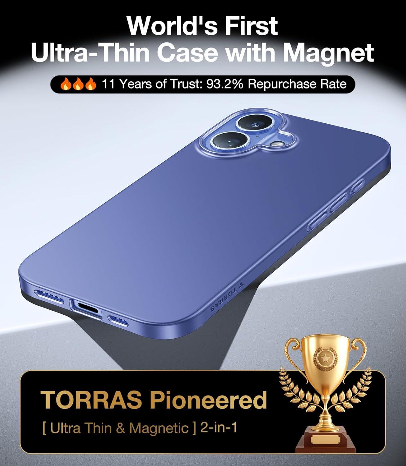 TORRAS Magnetic Slim-Fit for iPhone 16 Case 6.1 inch, Ultra-Thin 16 Phone Case Compatible with MagSafe Phone 16 Case, Light Anti-Scratch Matte Hard PC Bayer OriginFit, Blue Purple(Blue Purple)