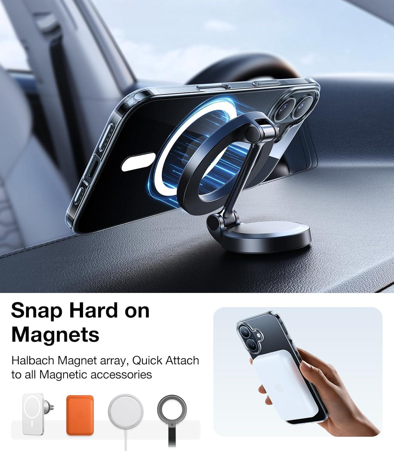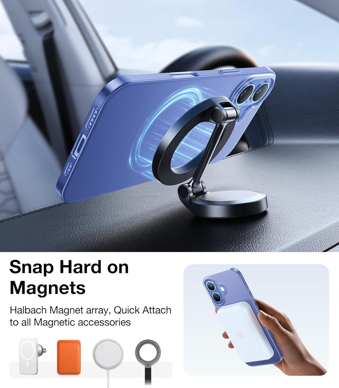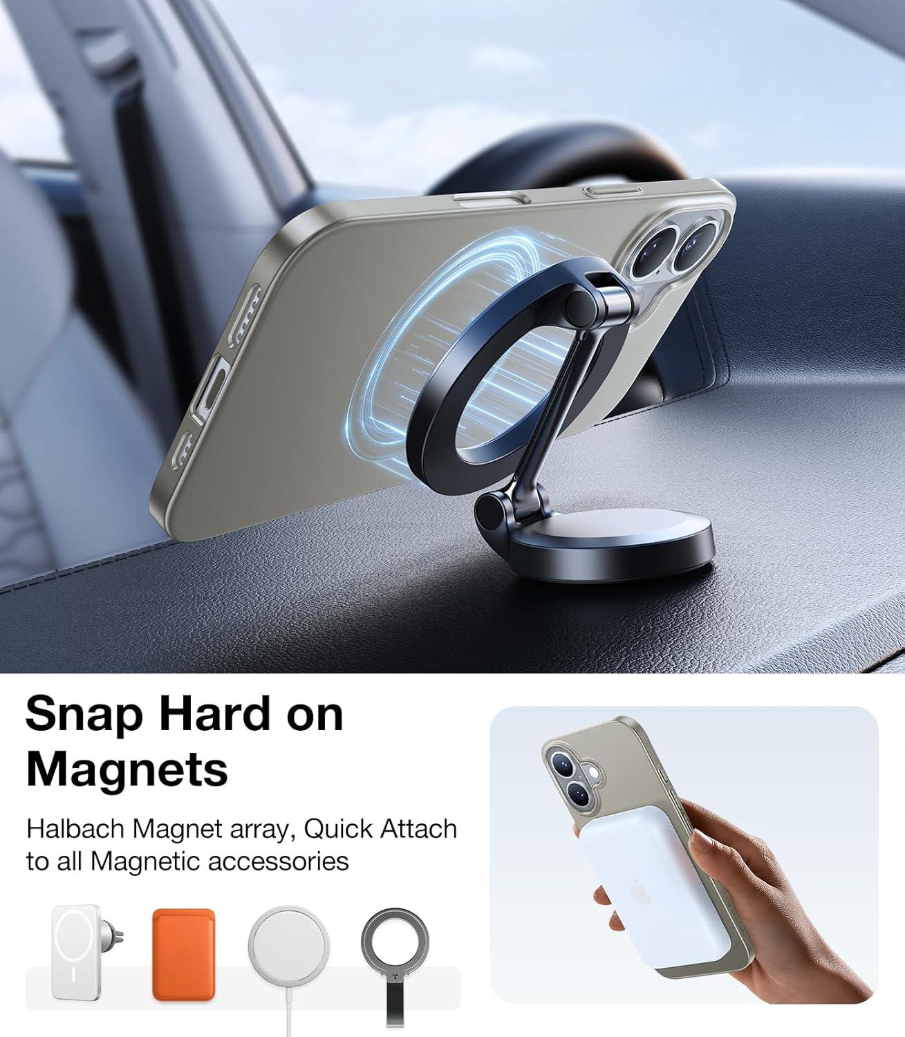 TORRAS Magnetic Slim Fit for iPhone 16 Pro Max Case with Stand, Ultra-Thin 16 Pro Max Phone Case Compatible with MagSafe, Built-in Stash Stand, Light Anti-Scratch Matte Hard PC 6.9 inch, Black(A_Clear-iPhone 16 Regular 6.1)