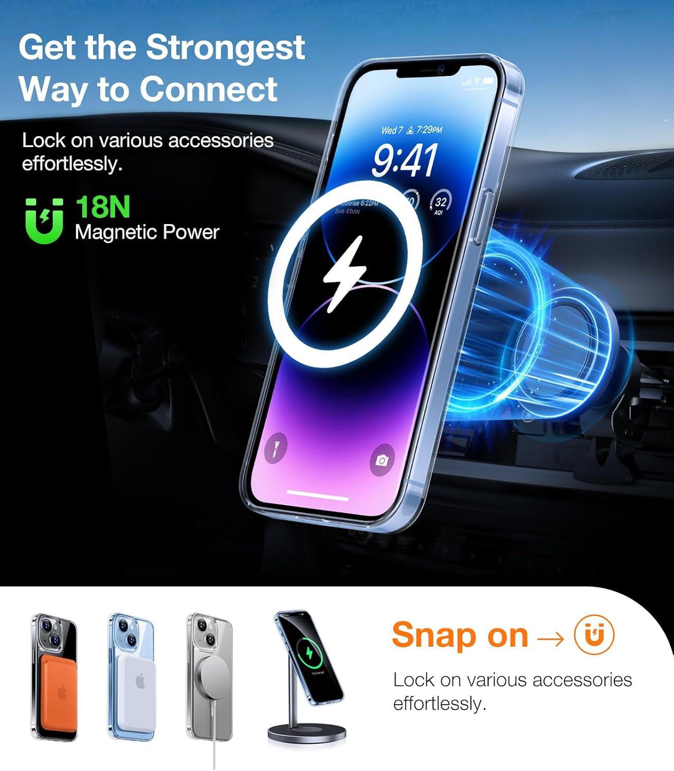 TORRAS Magnetic Shockproof for iPhone 15 Case iPhone 14 Case, 12FT Military Grade Drop Protection, Translucent Slim Protective Anti-Scratch, Black(Diamond Clear)