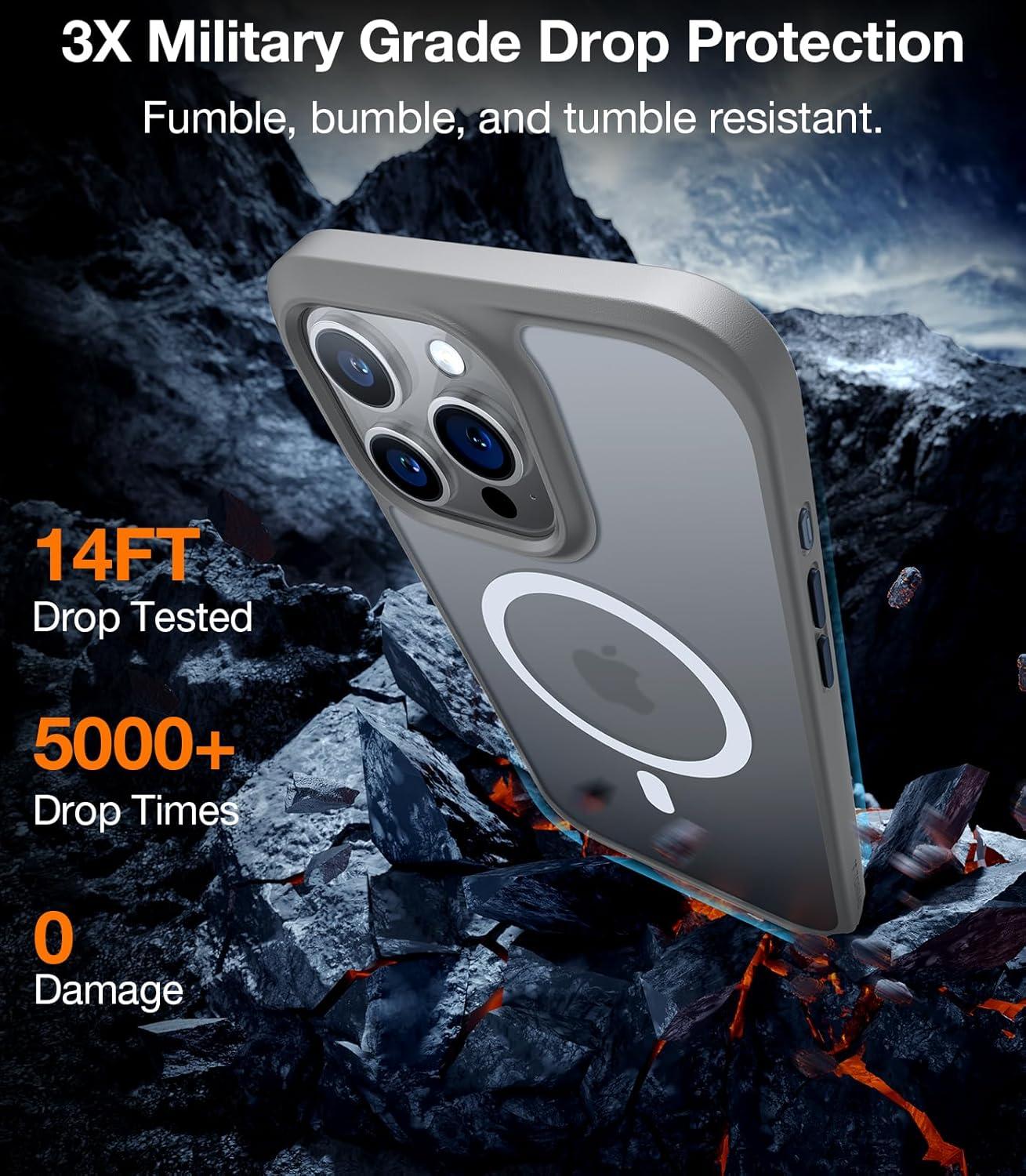 TORRAS Magnetic Shockproof for iPhone 15 Case iPhone 14 Case, 12FT Military Grade Drop Protection, Translucent Slim Protective Anti-Scratch, Black(Natural Titanium)