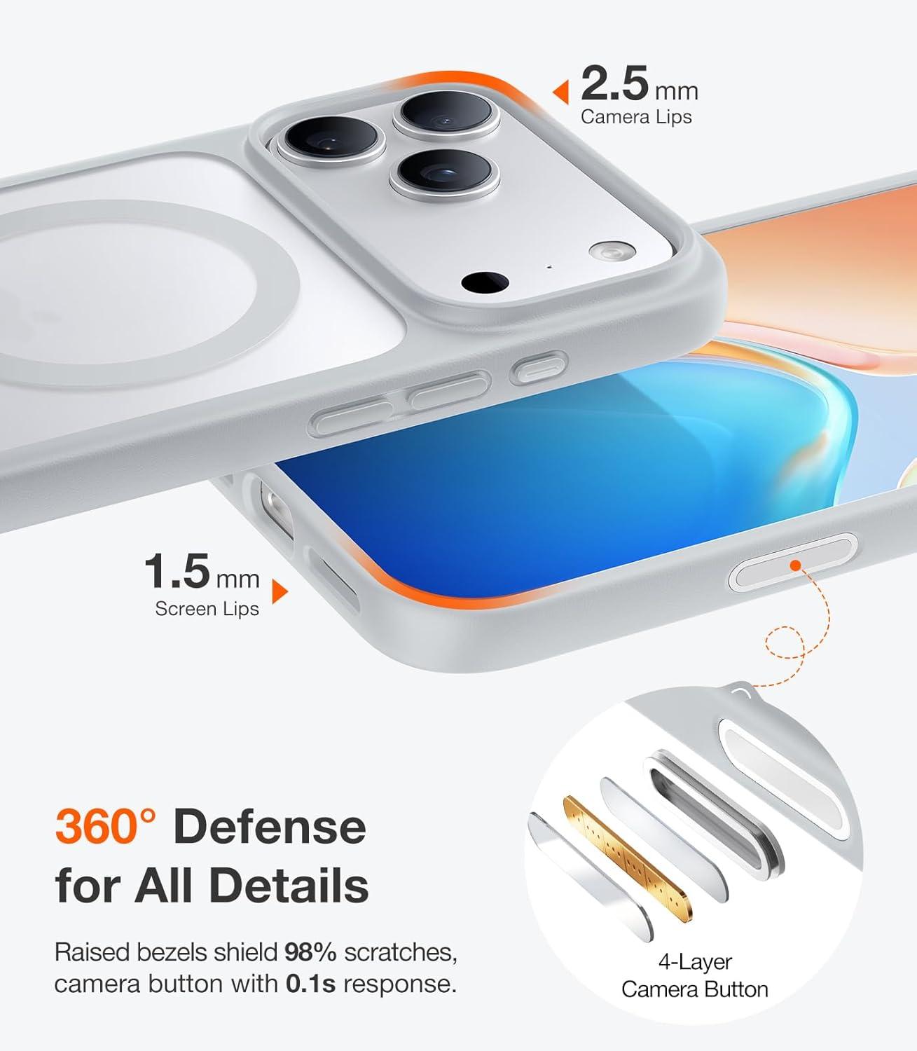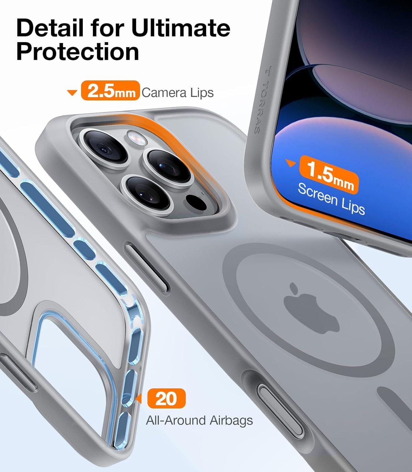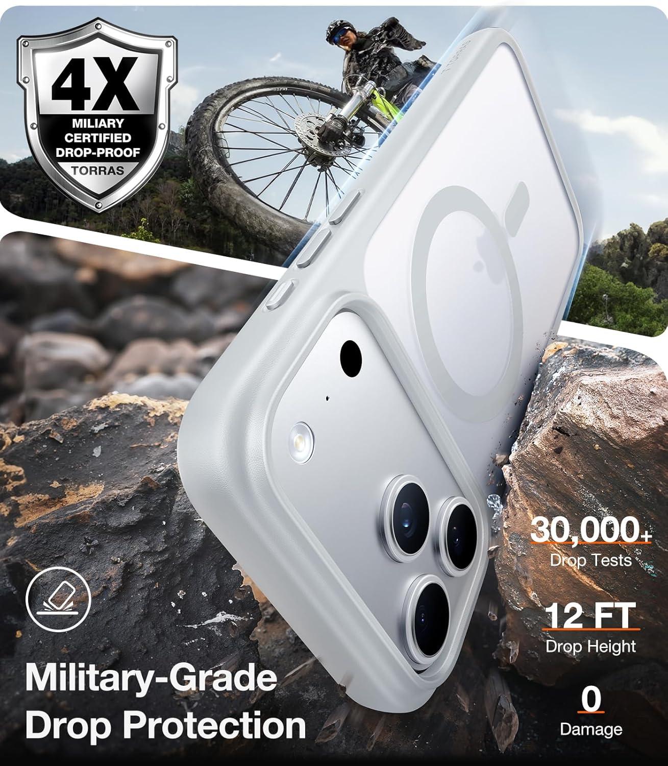 TORRAS Stronger Magnetic & Shockproof for iPhone 17 Pro Max Case, Fit for MagSafe, Military Grade Drop Protection, Camera Control, DIY Button, Slim for iPhone 17 Pro Max Case Translucent Deep Blue(Desert Titanium White)