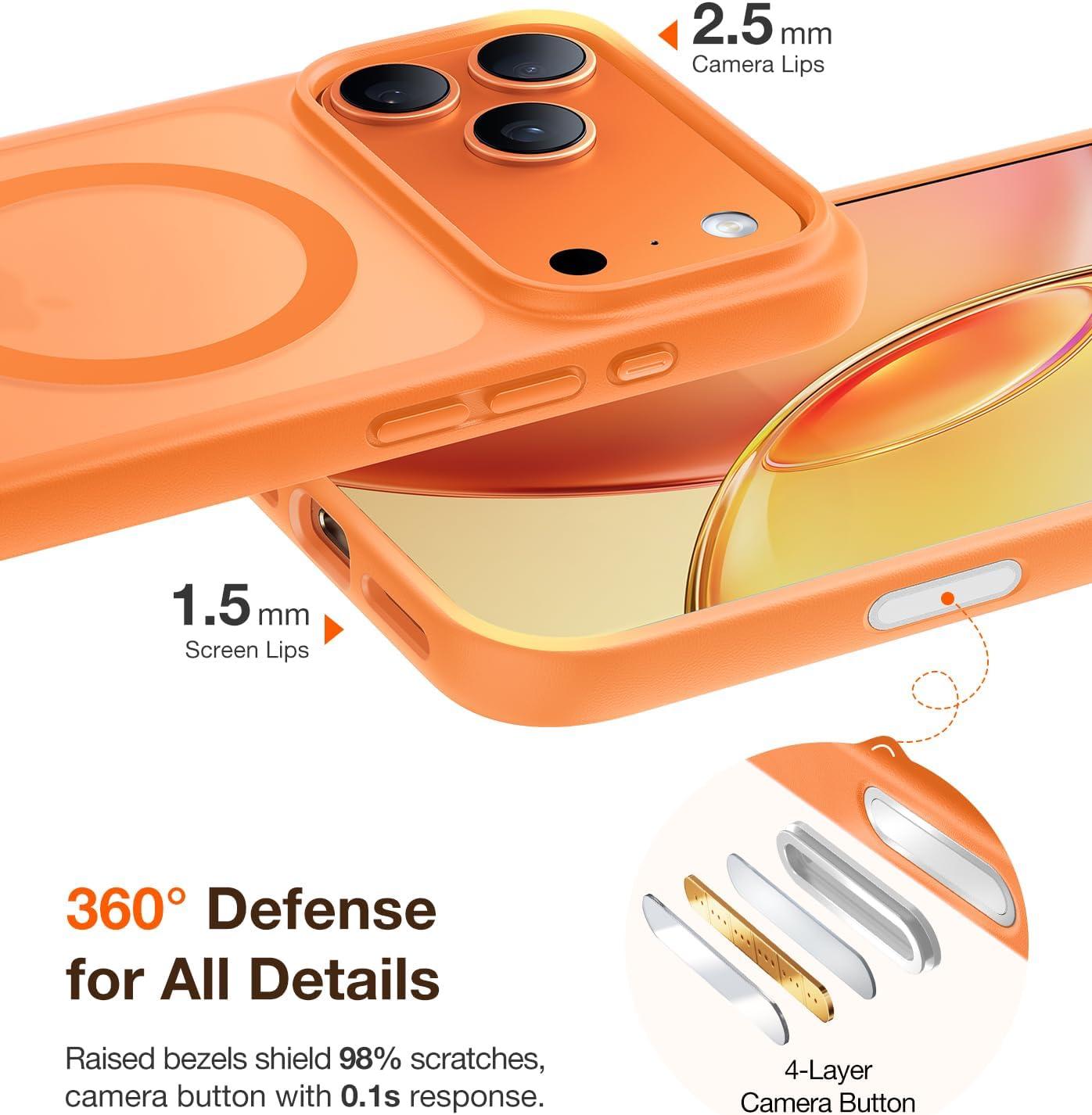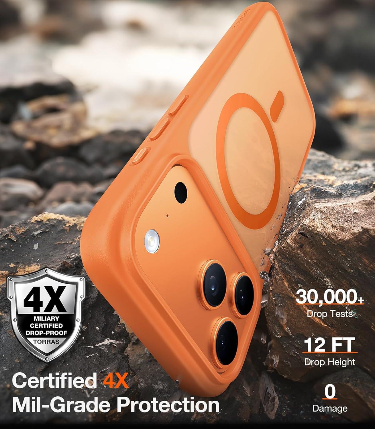 TORRAS Stronger Magnetic & Shockproof for iPhone 17 Pro Max Case, Fit for MagSafe, Military Grade Drop Protection, Camera Control, DIY Button, Slim for iPhone 17 Pro Max Case Translucent Deep Blue(Orange)