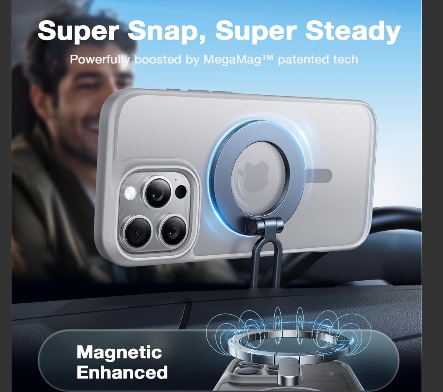 TORRAS Upgrade 360Rotatable Magnetic for iPhone 16 Pro Case 6.3 inch, Fit for MagSafe 16 Pro Phone Case, 16FT Mil-Grade Shockproof, Flush Stand Ring Holder, Translucent Slim Protective Ostand, Black(Grey)