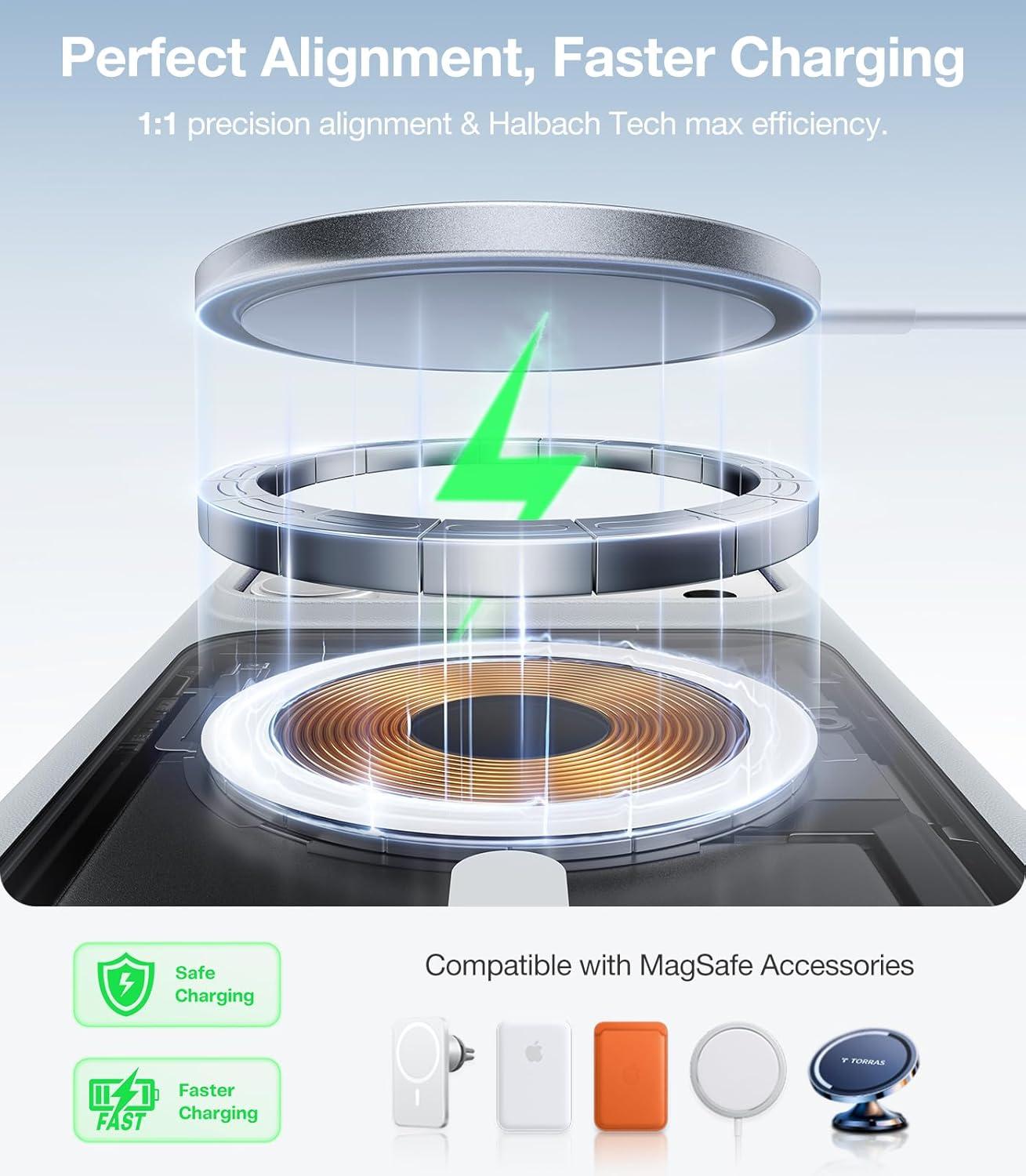 TORRAS Upgrade 360Rotatable Magnetic for iPhone 16 Pro Case 6.3 inch, Fit for MagSafe 16 Pro Phone Case, 16FT Mil-Grade Shockproof, Flush Stand Ring Holder, Translucent Slim Protective Ostand, Black(Clear)
