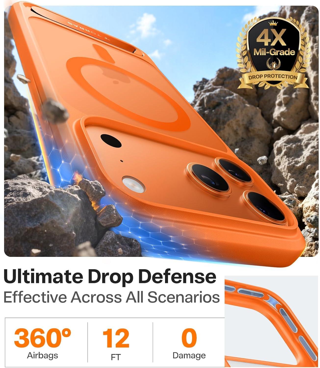 TORRAS Upgraded Magnetic & Stand for iPhone 14 Pro Case [Military Grade Drop Tested] [Compatible with MagSafe] Slim Thin Light Frosted Case for iPhone 14 Pro Phone Case Professional (6.1″), Black(Bright Orange-17 Pro)