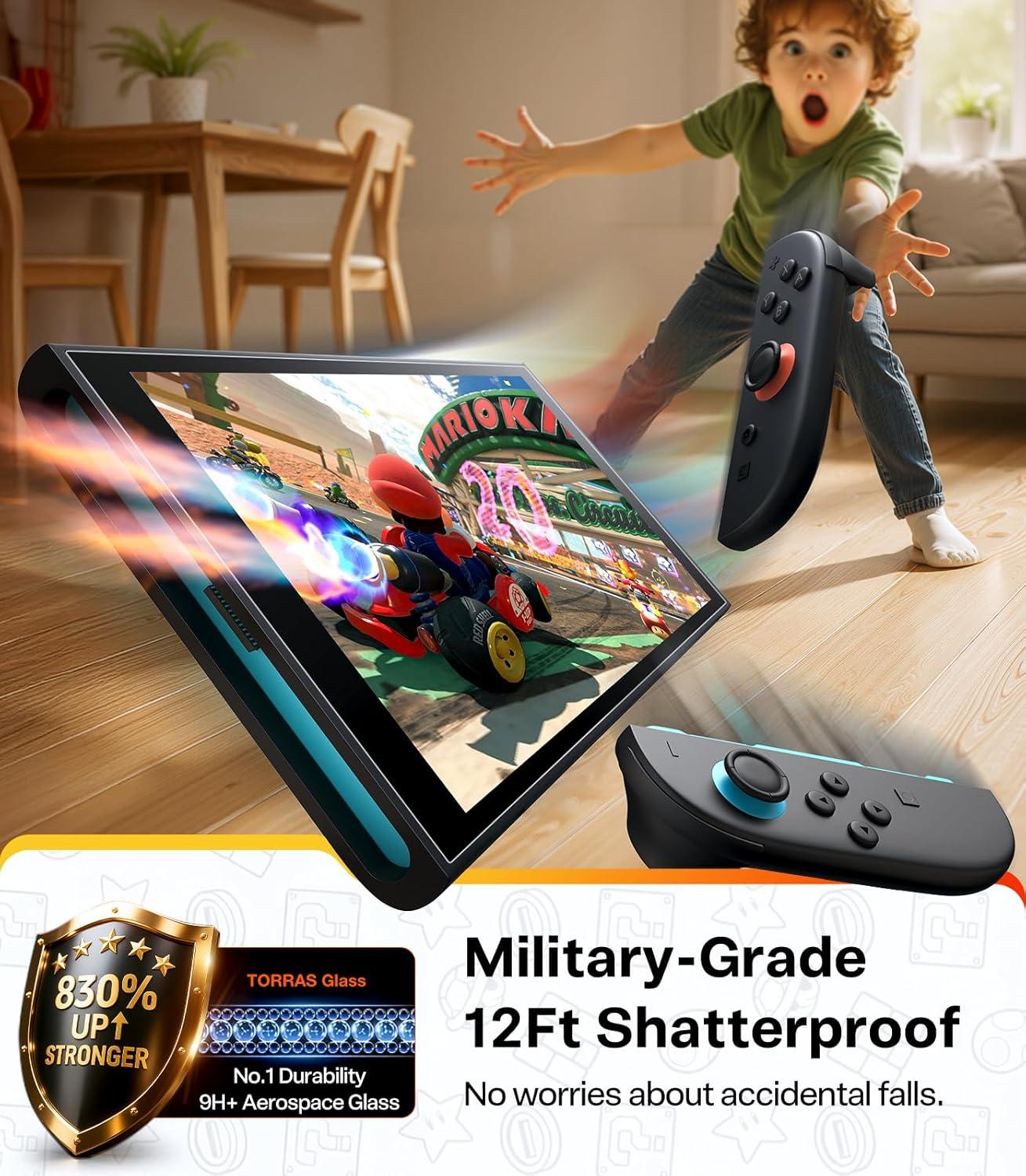 TORRAS UNBREAK Military-Grade for Nintendo Switch 2 Screen Protector 2025 [12Ft Shatterproof] [9H+ Aerospace Tempered Glass] Anti-Scratch Full Coverage Fit 7.9″ 2-Pack