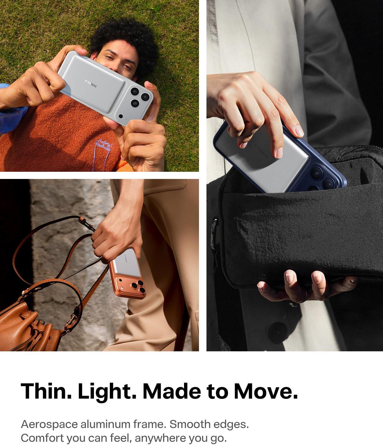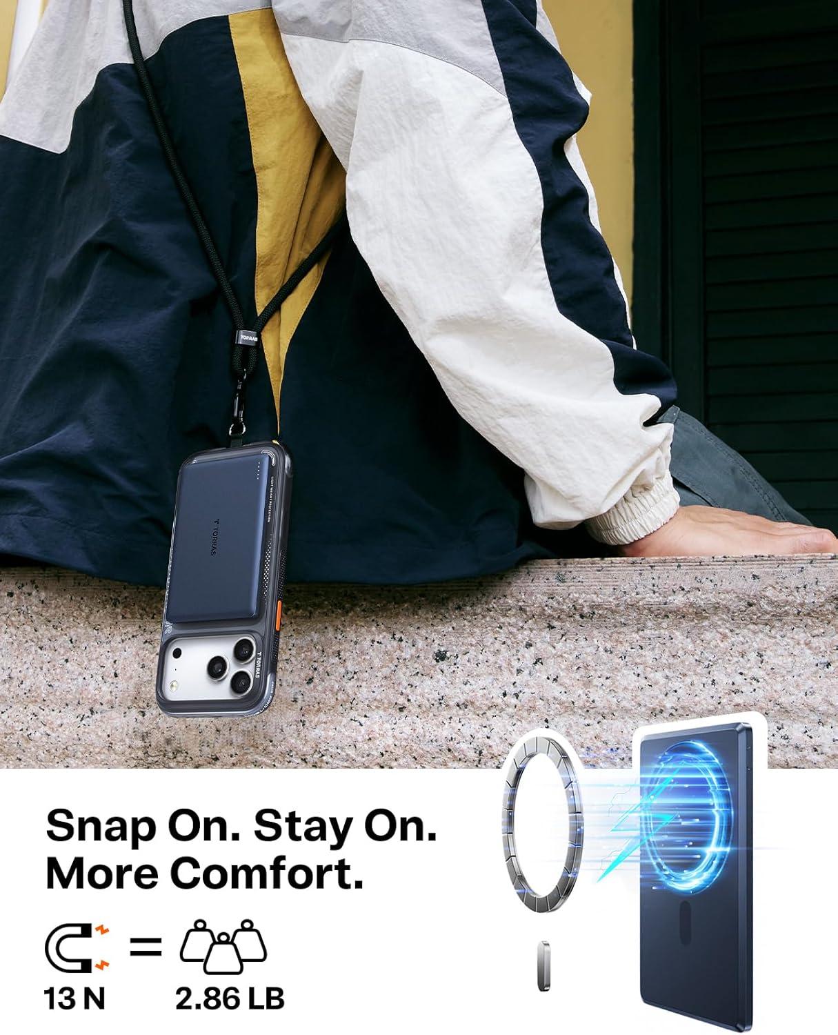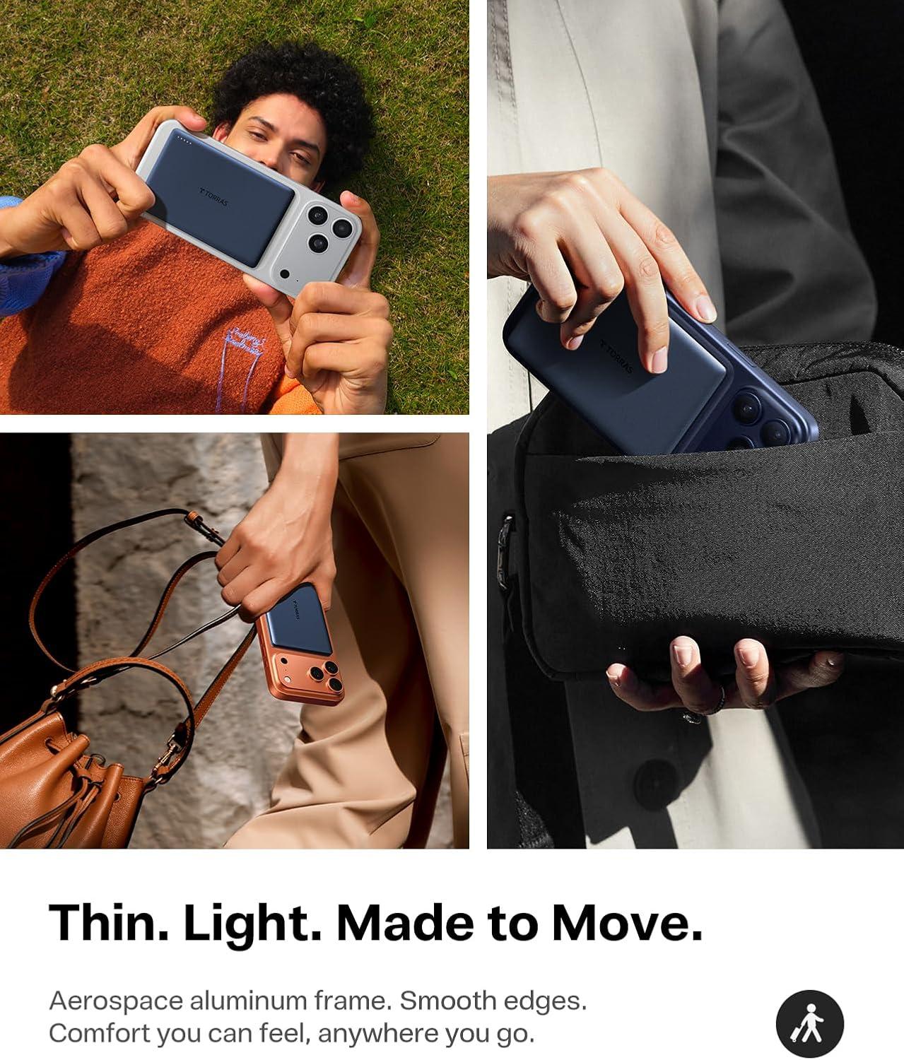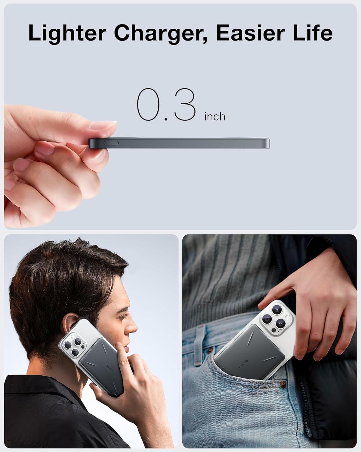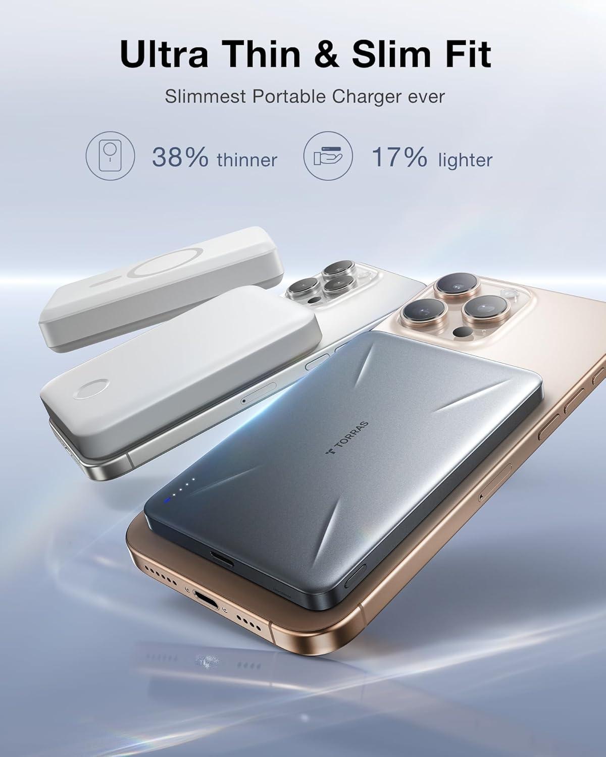 TORRAS 0.3‘’ Ultra Slim for MagSafe Portable Charger, 5,000mAh Magnetic Power Bank for iPhone 17 Air, Wireless Charger Fast Charging with USB-C Cable, Battery Pack for iPhone 17 Pro Max/16/15/14/13/12(Black)