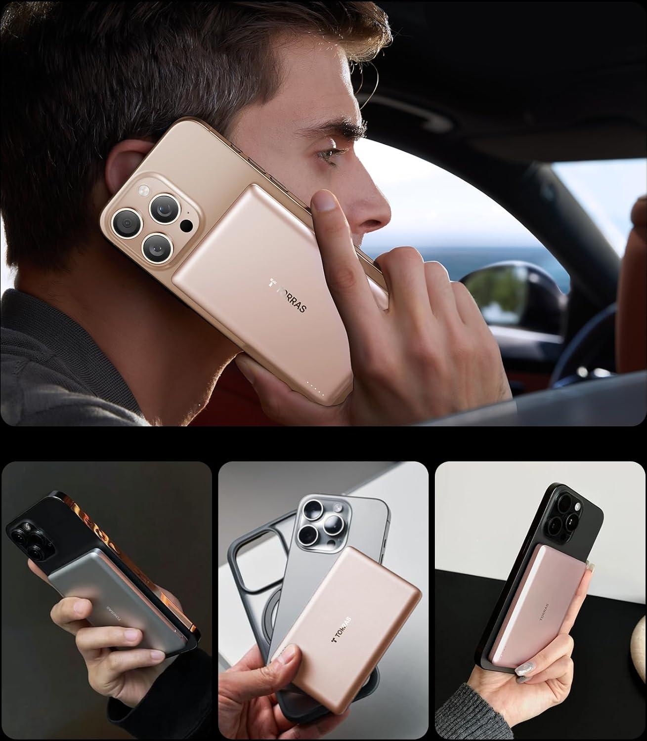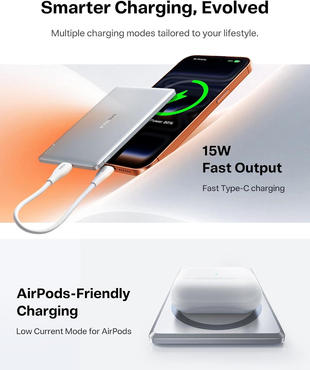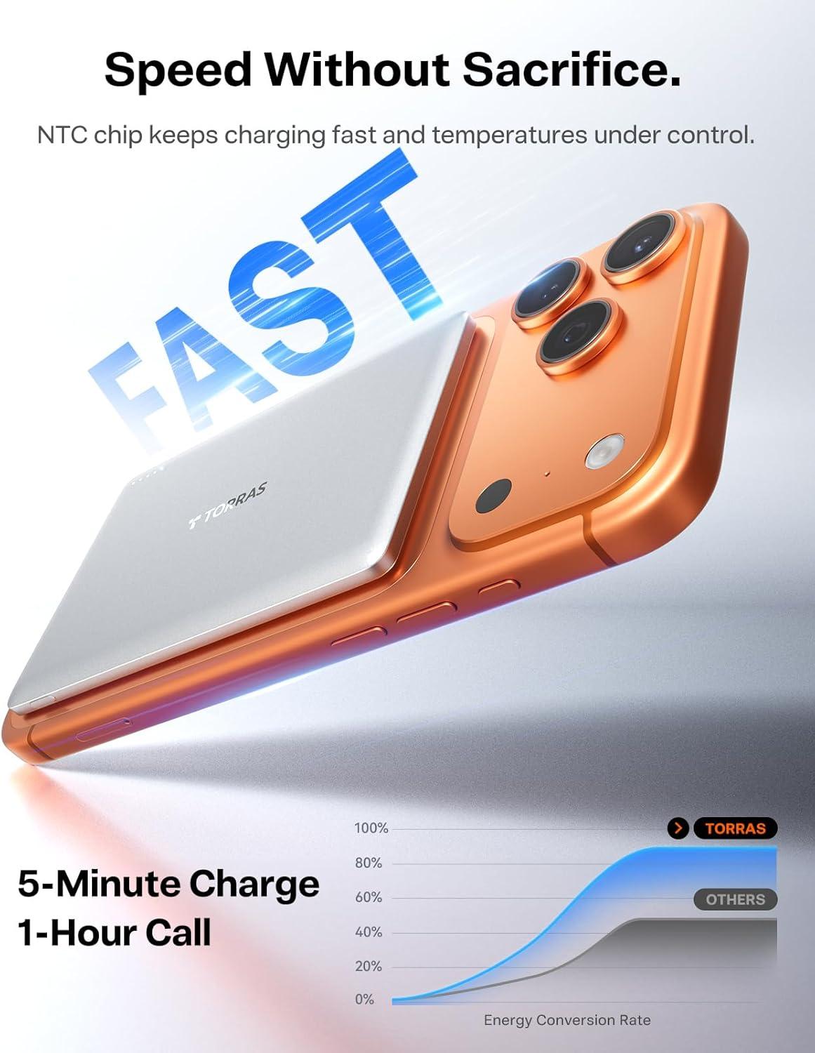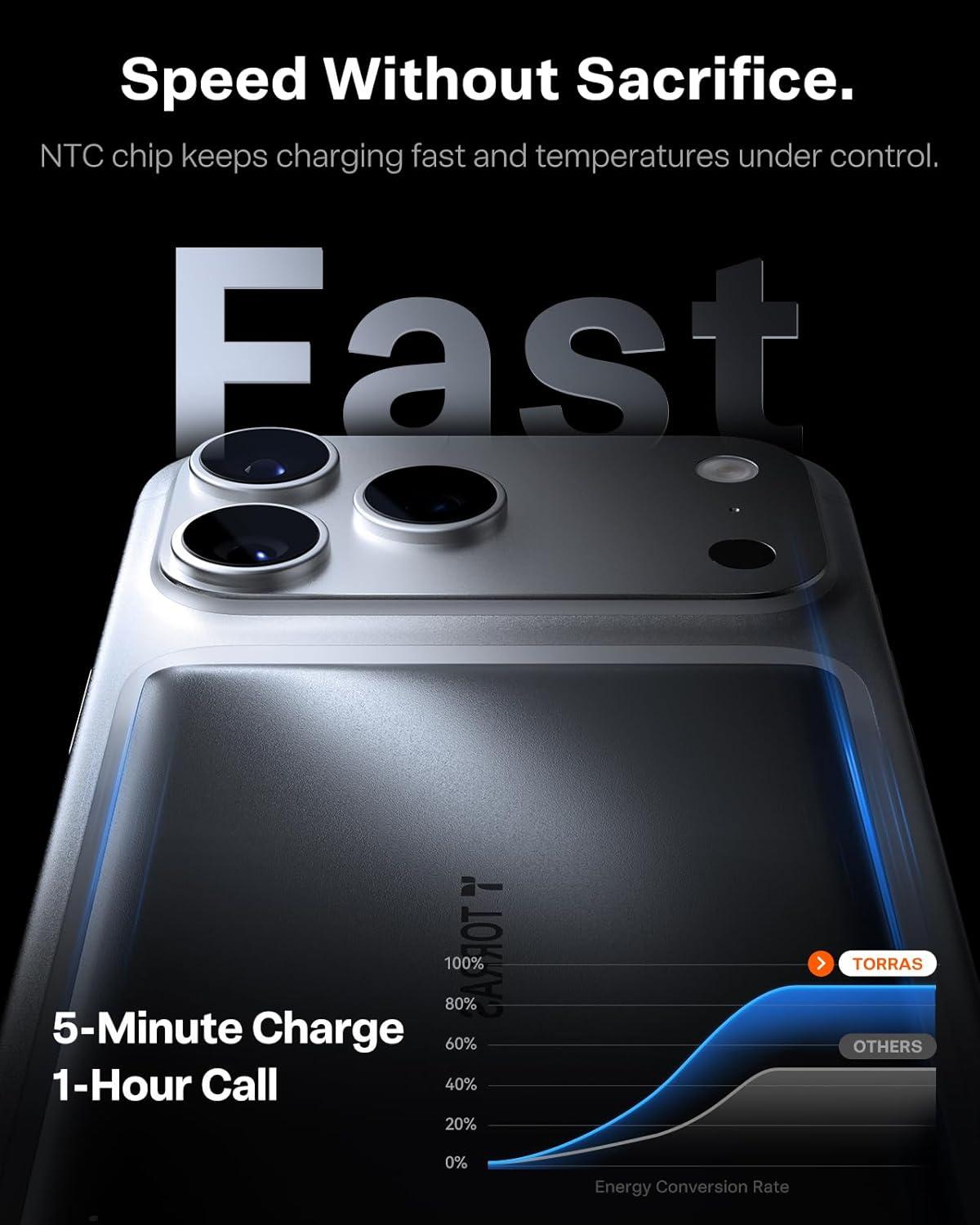 TORRAS 0.3‘’ Ultra Slim for MagSafe Portable Charger, 5,000mAh Magnetic Power Bank for iPhone 17 Air, Wireless Charger Fast Charging with USB-C Cable, Battery Pack for iPhone 17 Pro Max/16/15/14/13/12(Black)