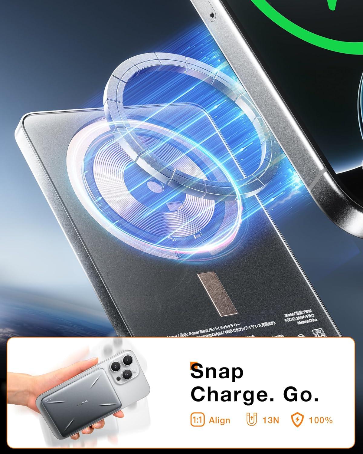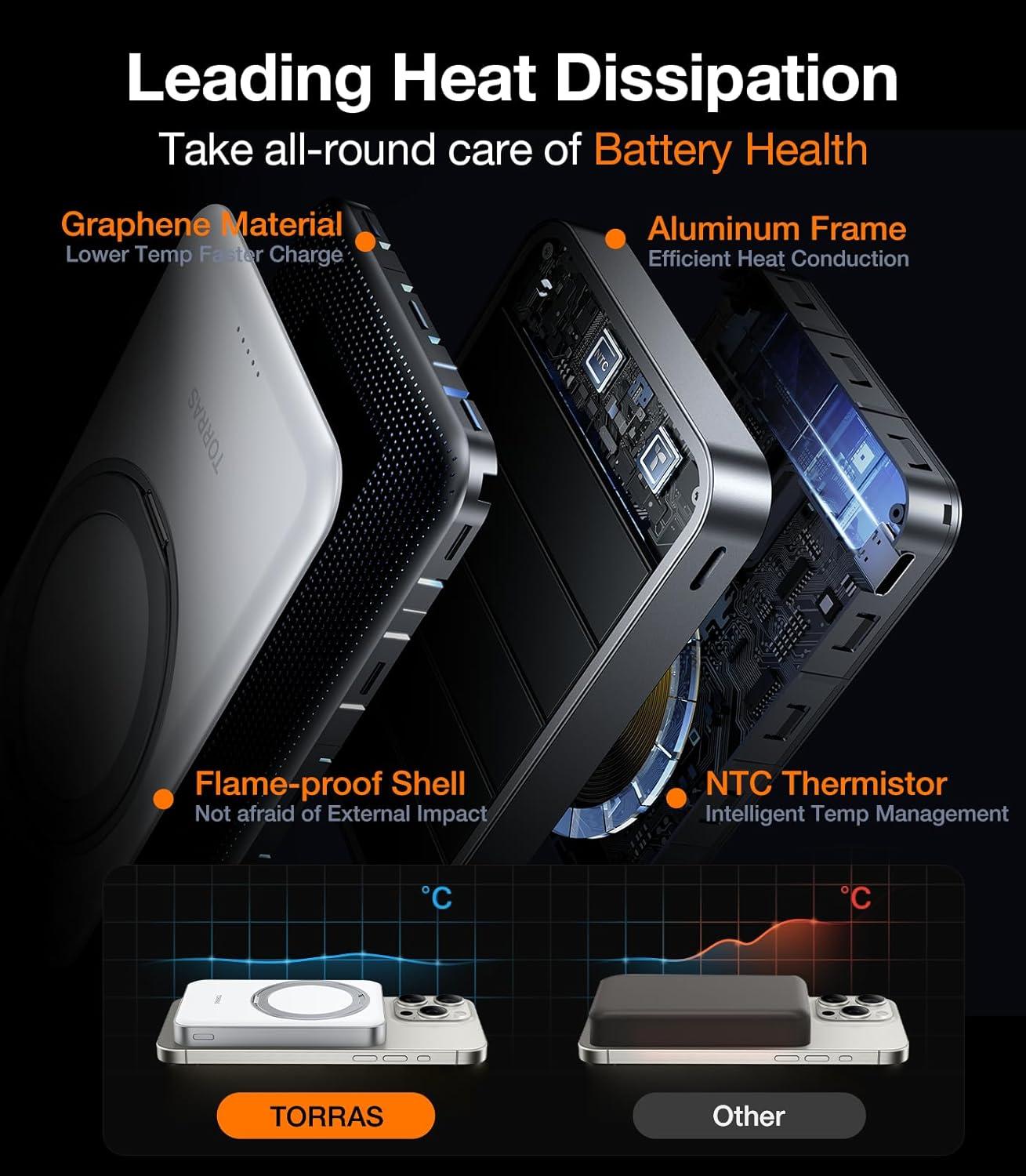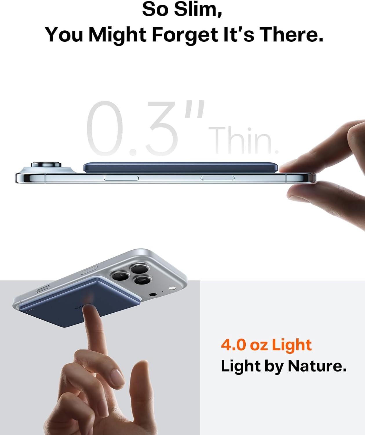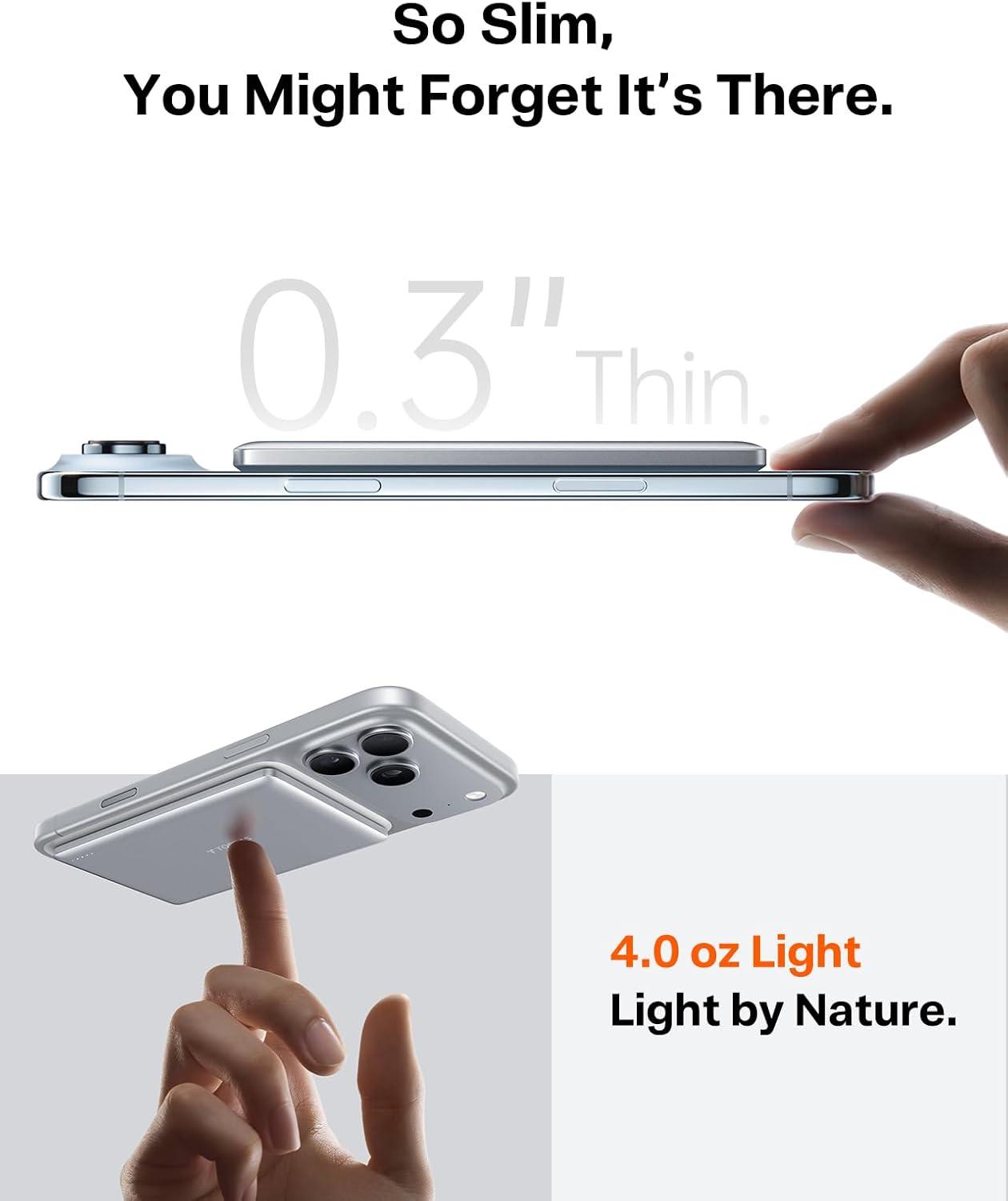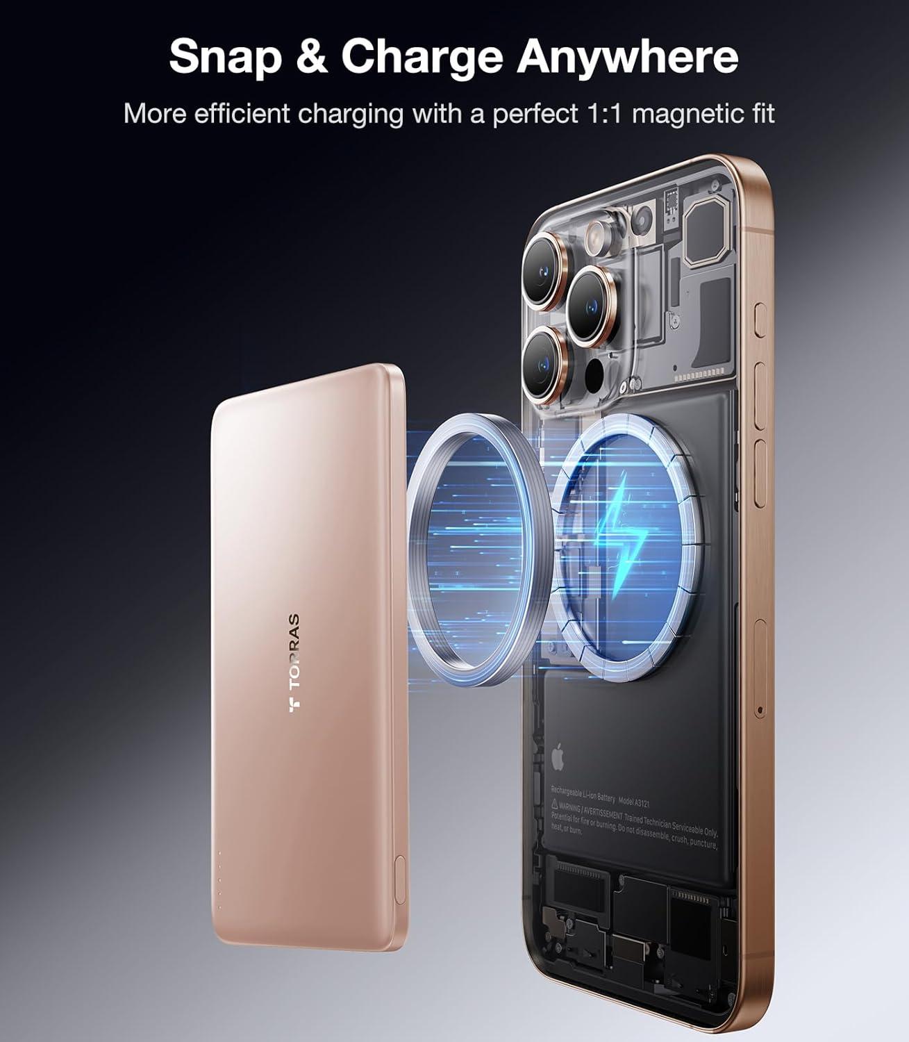 TORRAS 0.3‘’ Ultra Slim for MagSafe Portable Charger, 5,000mAh Magnetic Power Bank for iPhone 17 Air, Wireless Charger Fast Charging with USB-C Cable, Battery Pack for iPhone 17 Pro Max/16/15/14/13/12(Black)
