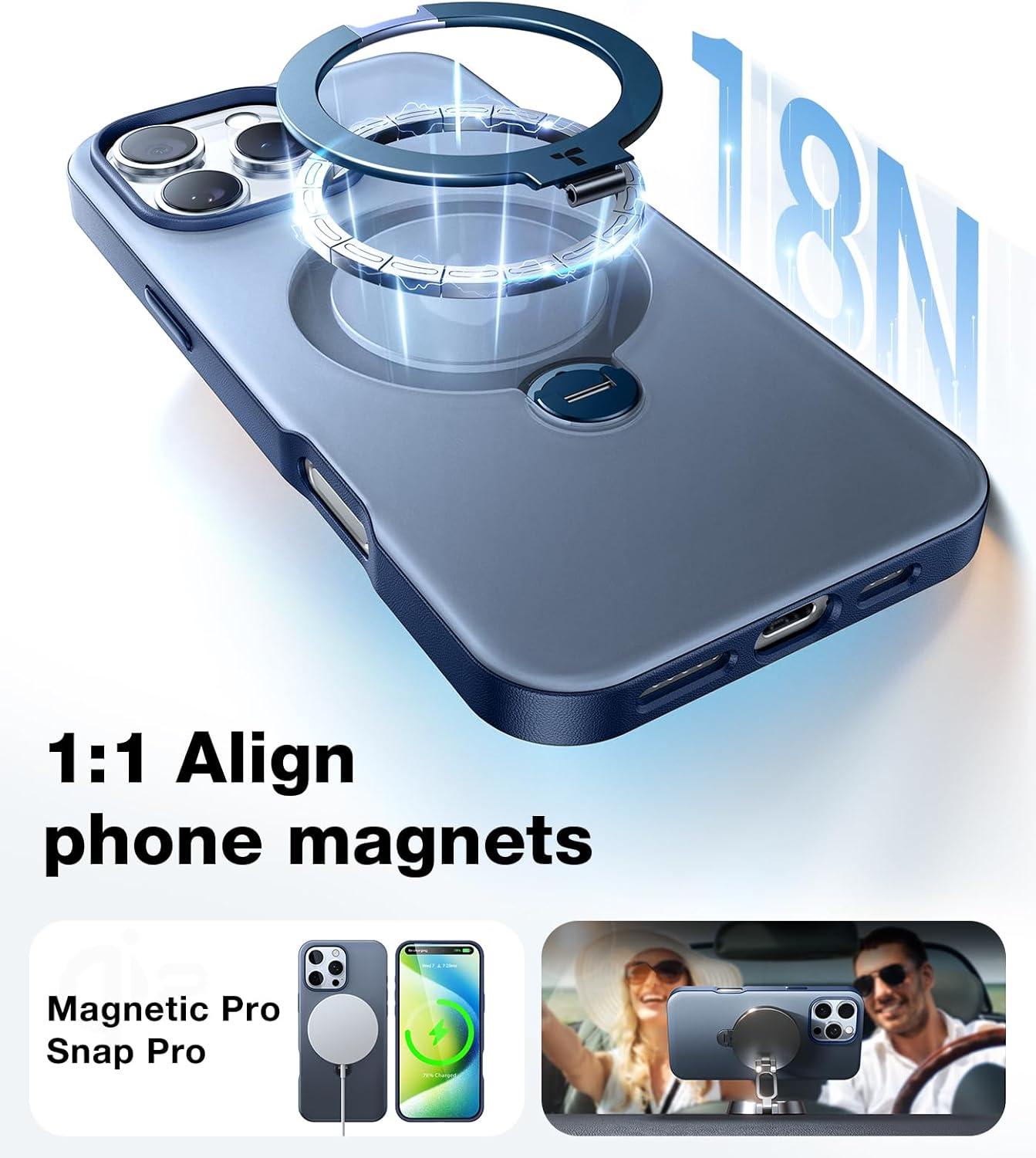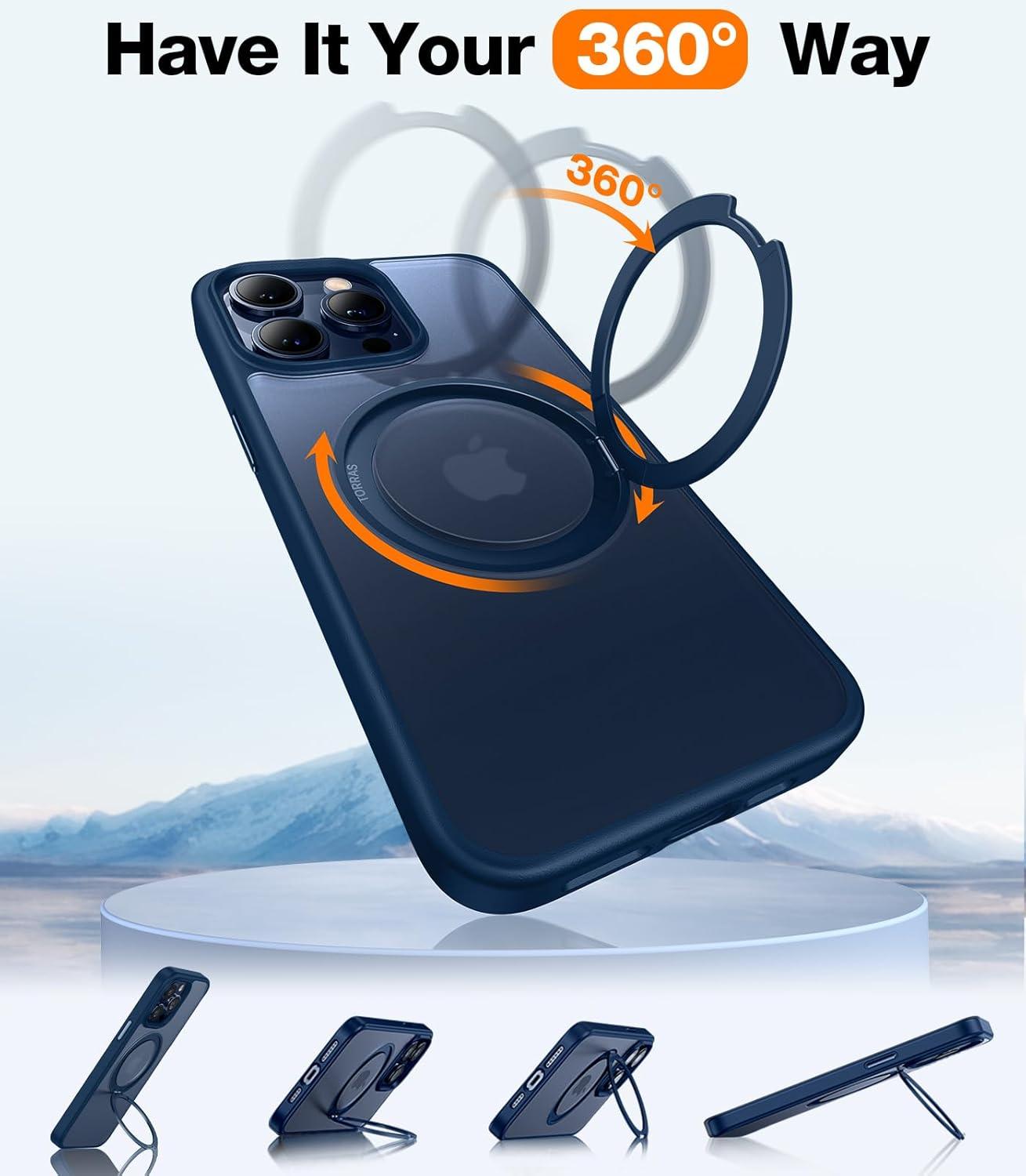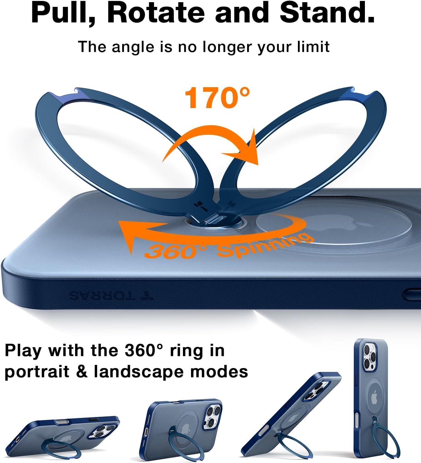 TORRAS 2024 Ugraded 360°Rotatable Magnetic Ring for iPhone 15 Pro Max Case, Fit for MagSafe with Stand & Ring Holder, Military Grade Shockproof Translucent Back for iPhone 15 ProMax Case Ostand, Blue