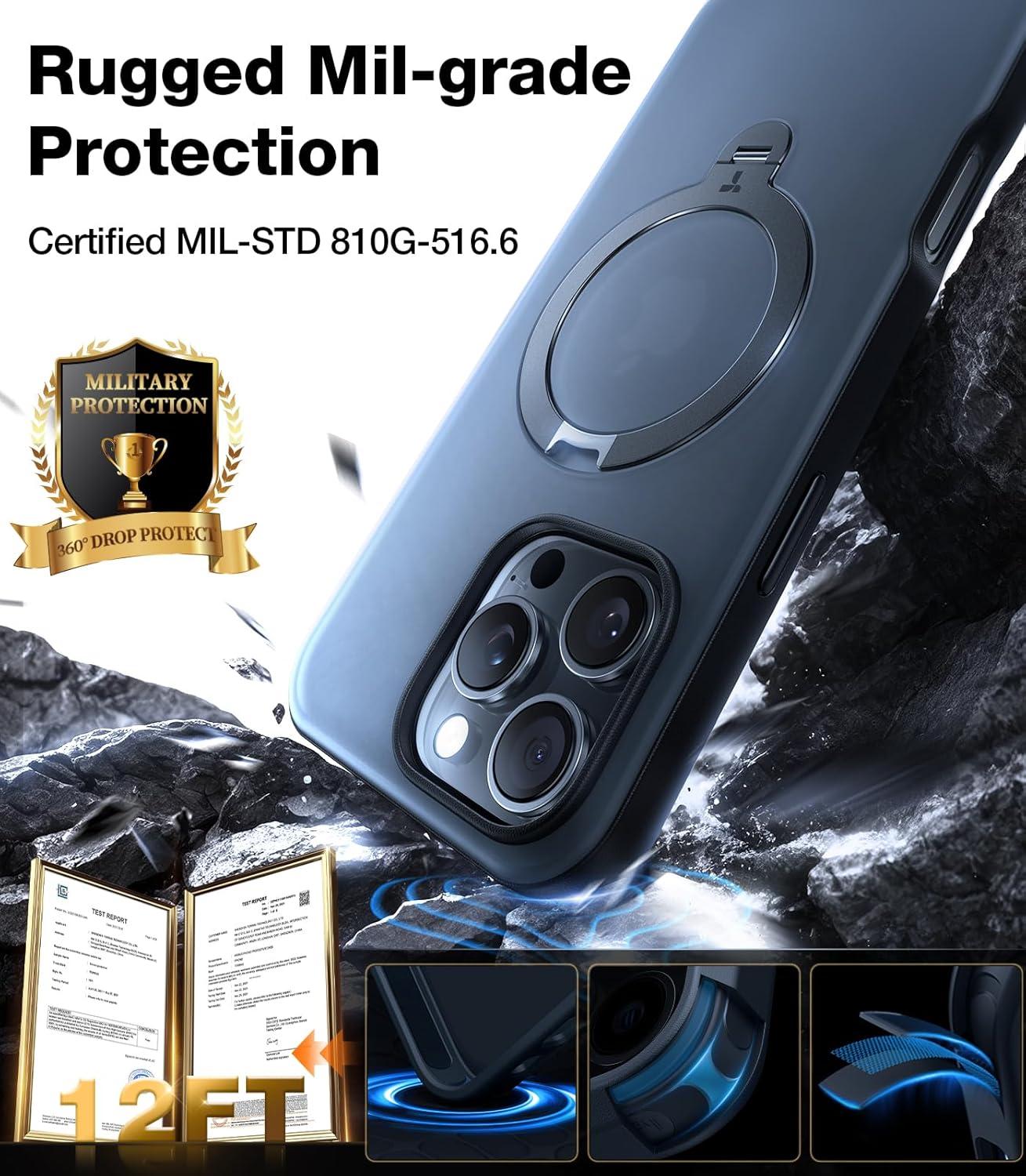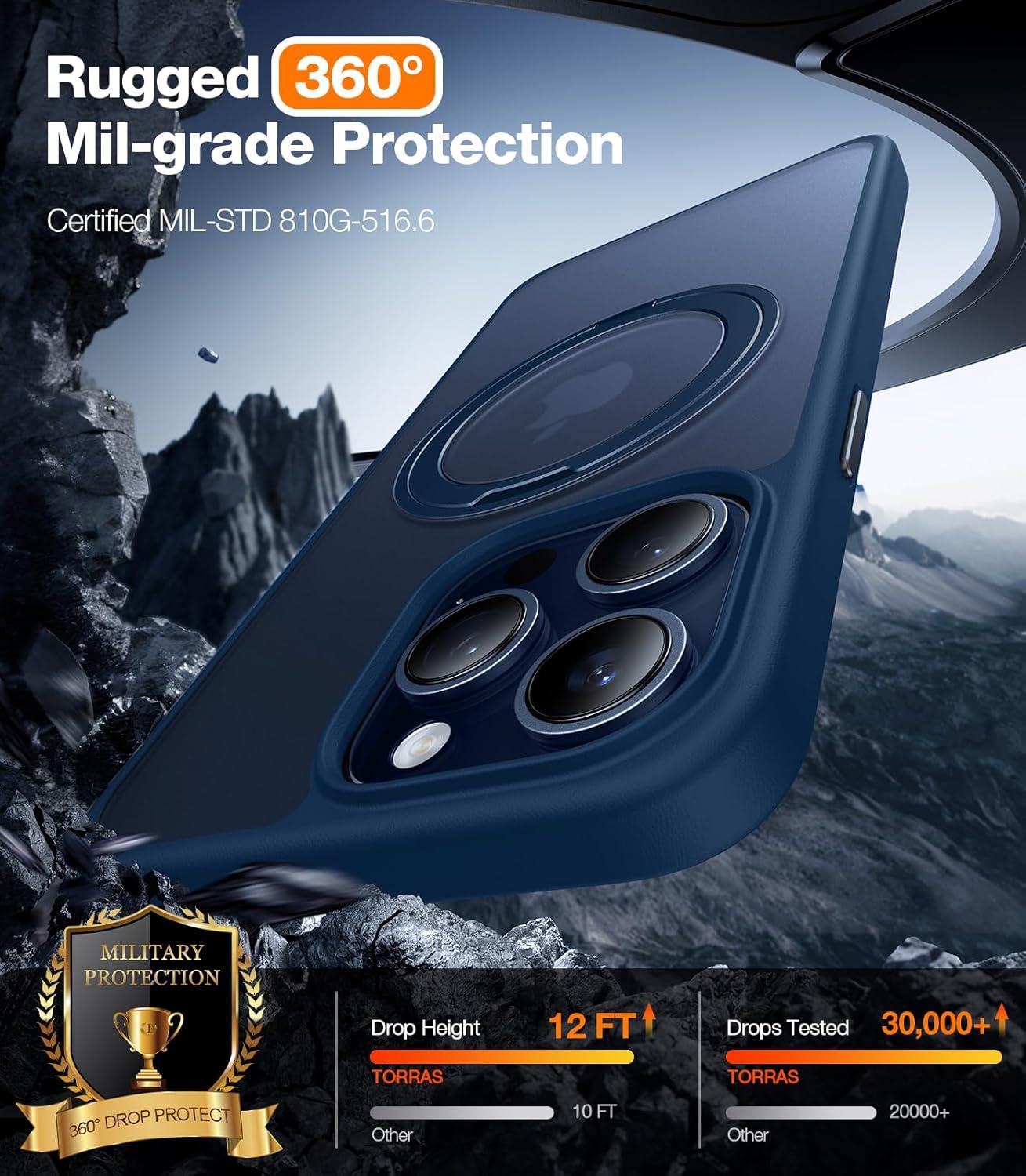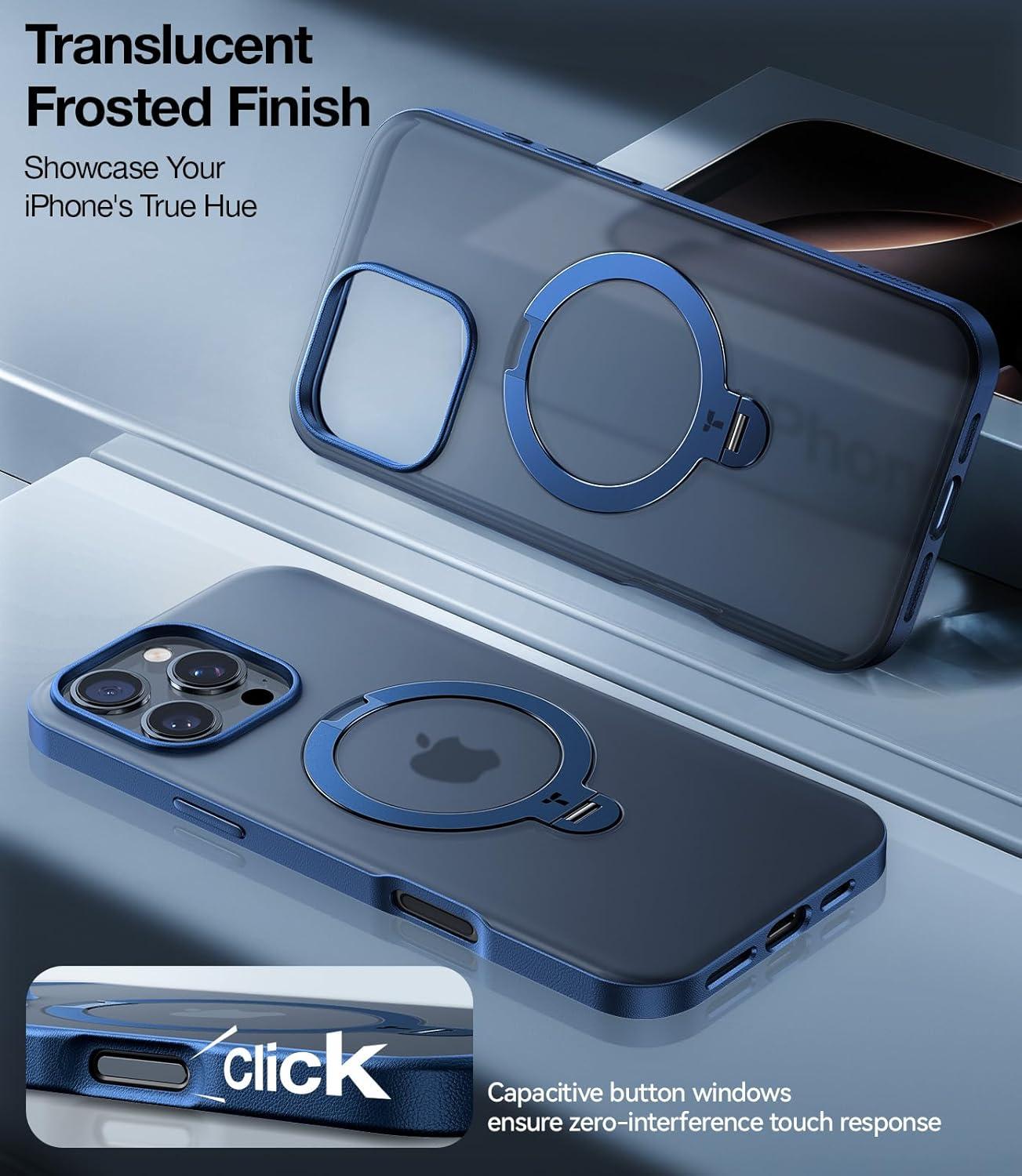 TORRAS 2024 Ugraded 360°Rotatable Magnetic Ring for iPhone 15 Pro Max Case, Fit for MagSafe with Stand & Ring Holder, Military Grade Shockproof Translucent Back for iPhone 15 ProMax Case Ostand, Blue