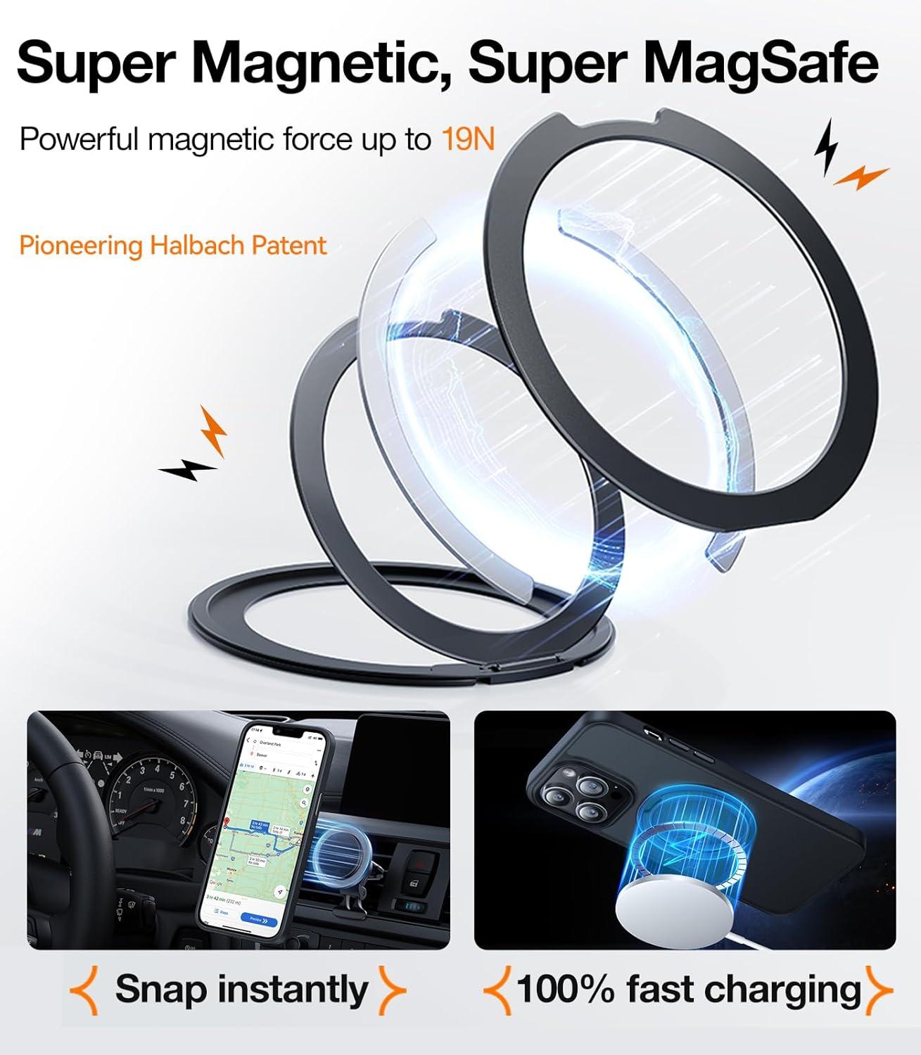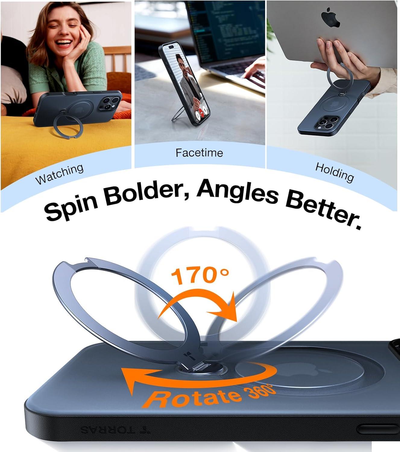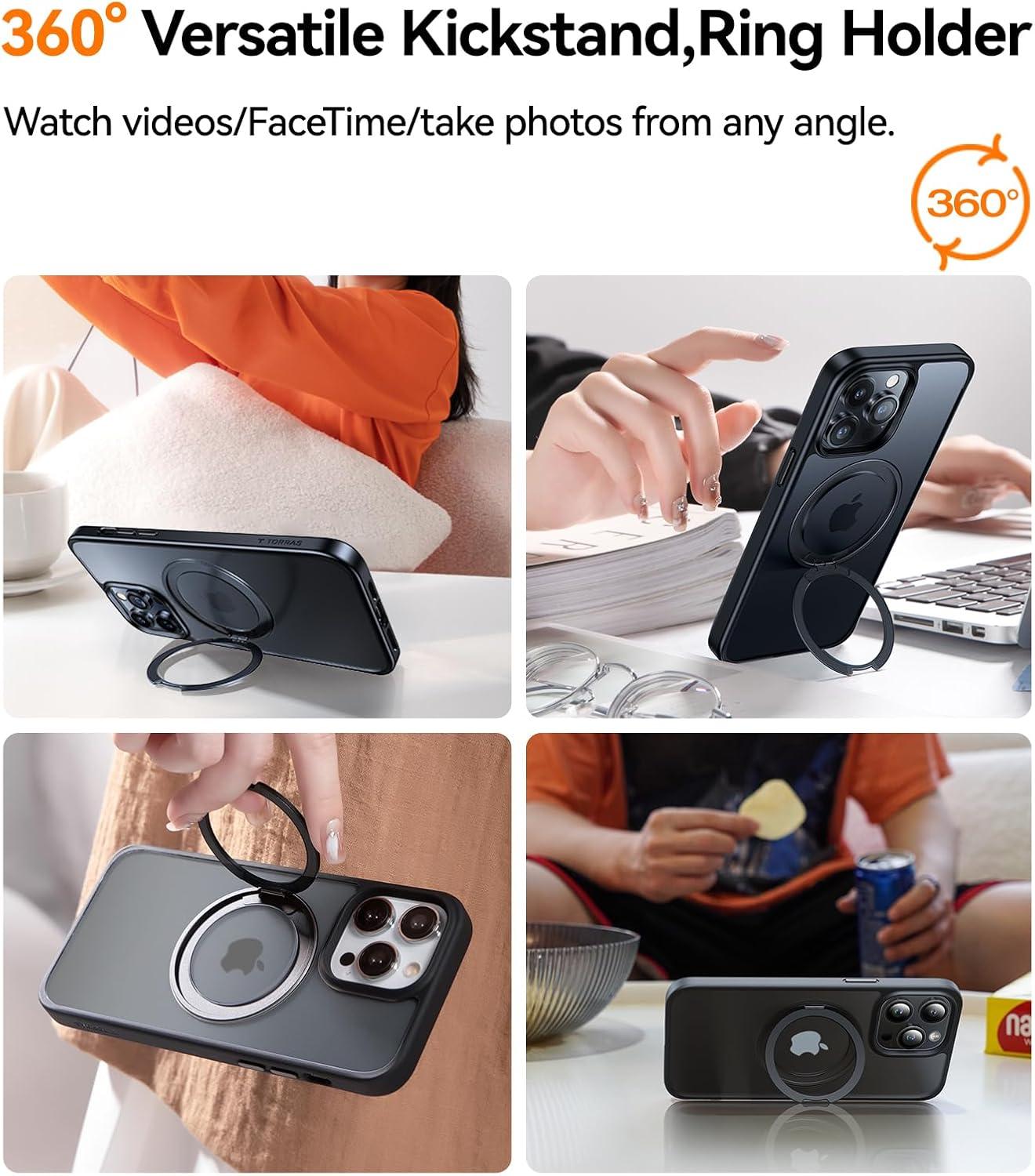 TORRAS 2024 Upgraded 360° Rotatable Ring for iPhone 13 Pro Max Case, Fit for Magsafe with Stand, Magnetic Ring Holder, Military Grade Shockproof Translucent Back Slim Phone Case Ostand R, Black
