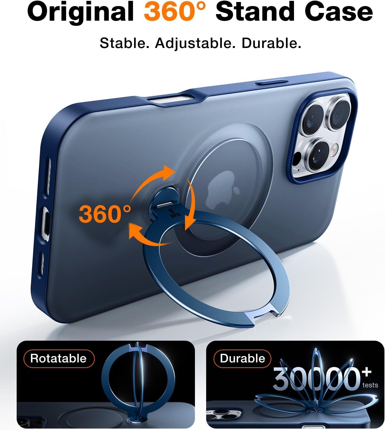 TORRAS 360 Magnetic Stand for iPhone 17 Pro Max Case, Fit for MagSafe, Non-Yellowing Clear Case for iPhone 17 Pro Max Phone Case with Kickstand & Camera Control, Hard PC Protection, Q3 Spin(Blue)