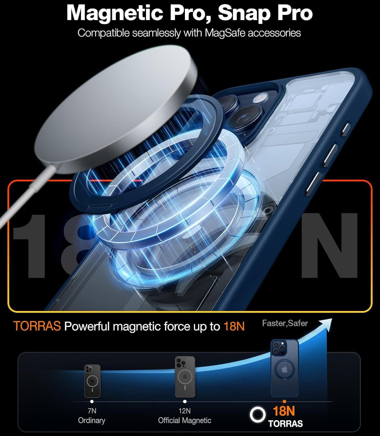 TORRAS 360 Magnetic Stand for iPhone 16 Pro Max Case, [Fit for MagSafe] [Military-Grade Protection] Translucent Slim Case for iPhone 16 Pro Max, Obsidian Black, Ostand O3 Fitness Series(Coastal Blue)