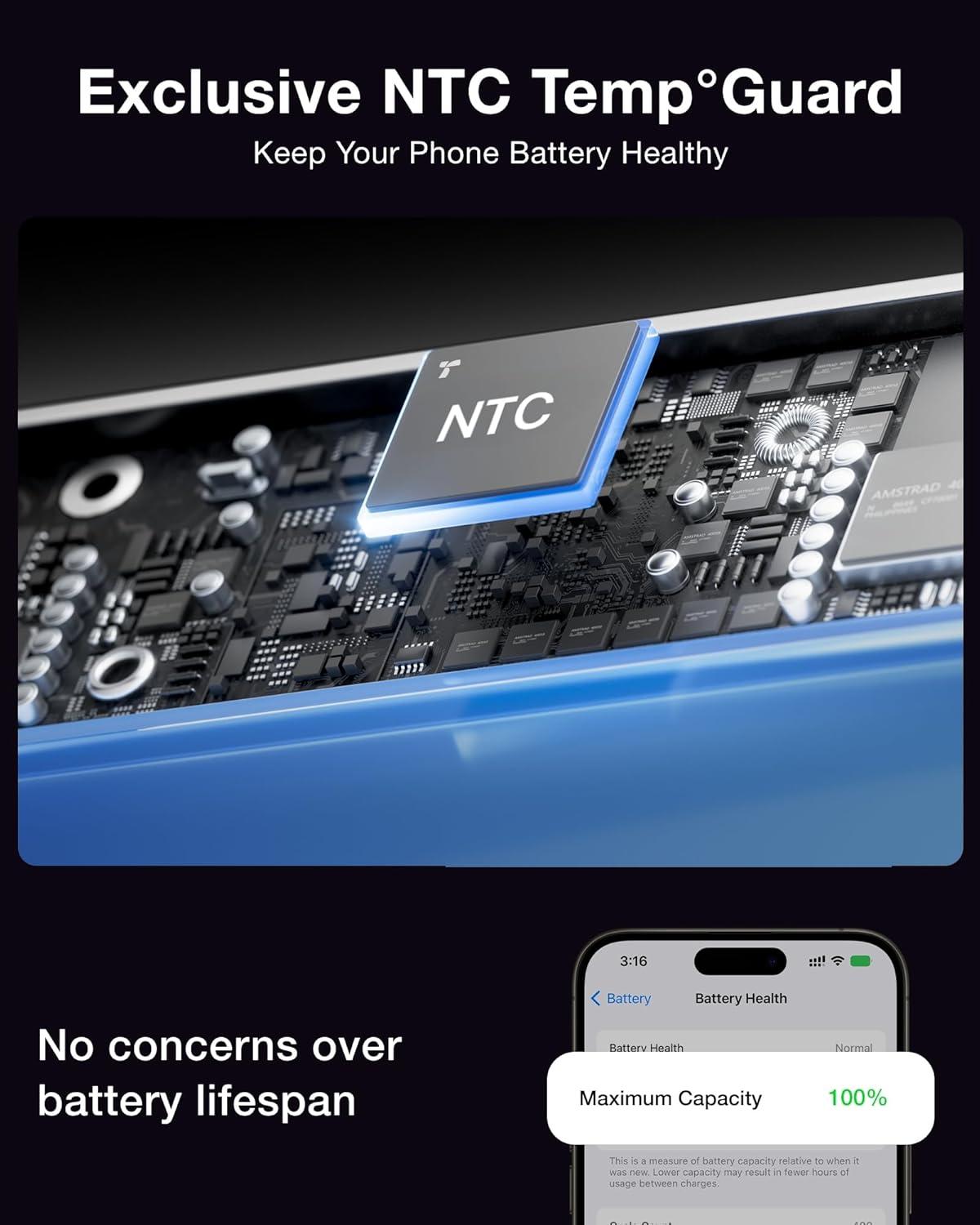 Exclusive NTC Temp°Guard Battery Protection: With the advanced NTC Temp°Guard 2.0 technology to protect your MagSafe battery pack from overcharging, overcurrent, and short circuits. Enjoy reliable and safe charging with intelligent real-time temperature monitoring, ensuring your phone battery stays in top condition every time.