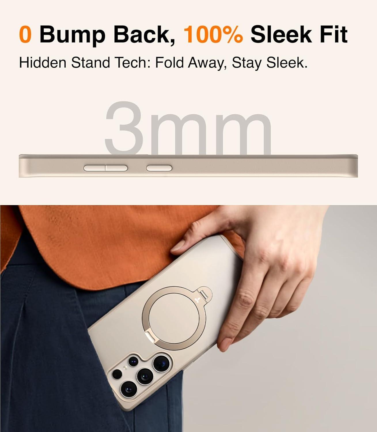 【Pioneering 360° Spin Stand】 This phone case for Samsung Galaxy S25 Ultra with stand offers a wider and more flexible adjustment angle: Place it in landscape mode for watching movies, adjustable to prevent screen glare. Switch to portrait mode with a unique angle up to 90°, and it can stand perfectly vertical for timer photos, like a mini tripod. No matter how high or low your desk is, just spin it boldly to achieve any of your viewing angles! Undergoing 30,000 rotation tests, the spinning stand has a longer service life than ever before