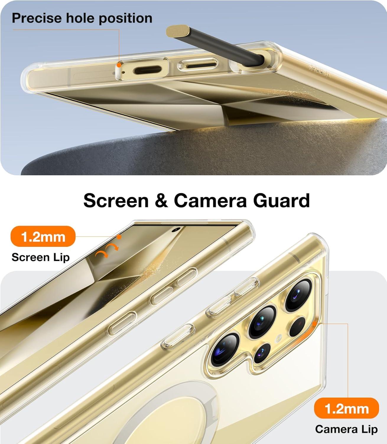 🏆[Our Most Protective Case to Date of 12FT] Gone are the days of thick and bulky protective cases. This shockproof Galaxy S24 Ultra case is a perfect balance of protection and innovation, letting you explore the world without limits. With military-grade drop protection, it can absorb 98% of the impact force and increase the protection capability by 20%. This case for Samsung S24 Ultra also features raised edges wrapped around the cameras and screen bezel, showcasing meticulous protection in every detail. For unbeatable drop protection, keep your phone looking flawless