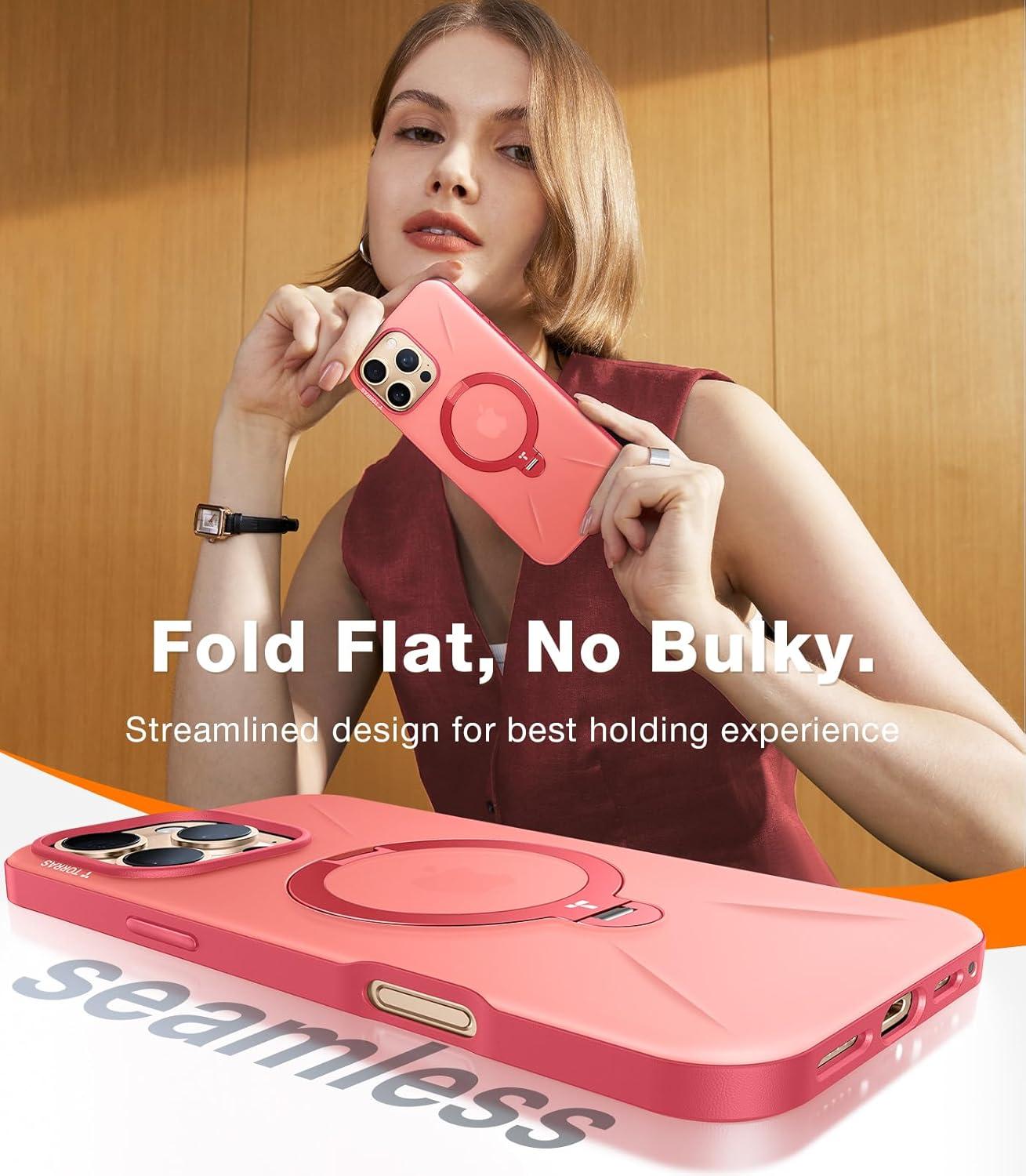 Pioneering 360° Spin Stand: The spinning stand case for iPhone 16 Pro Case provides a wider and more flexible adjustment angle: Place it in landscape mode for watching movies, switch to portrait mode with a unique angle up to 90°, it can stand perfectly vertical for a timer photo like a mini tripod. No matter how high or low your desk is, just spin it boldly to achieve any of your viewing angles! Undergoing 30,000 rotation tests, the spinning stand has a longer service life than ever before