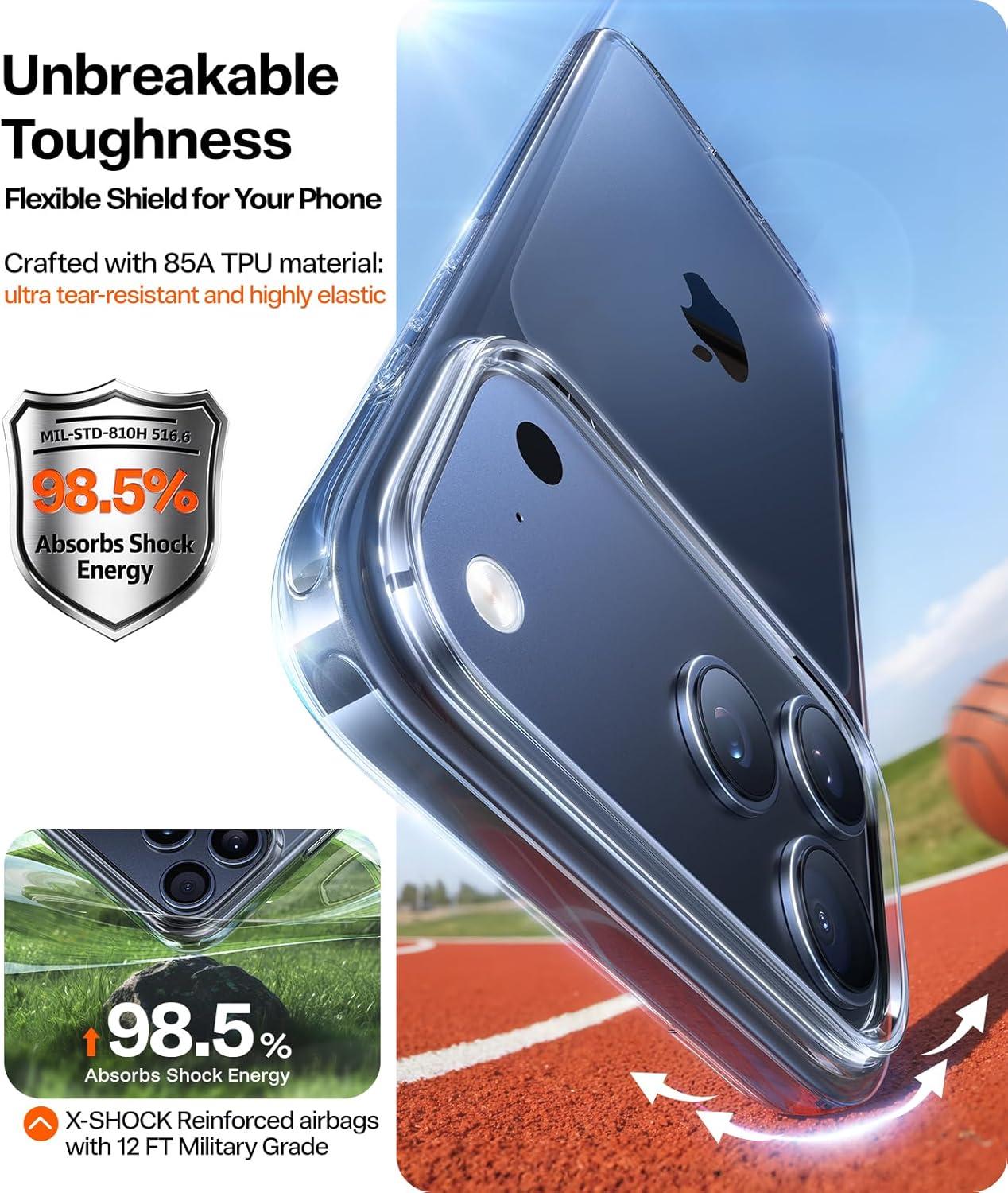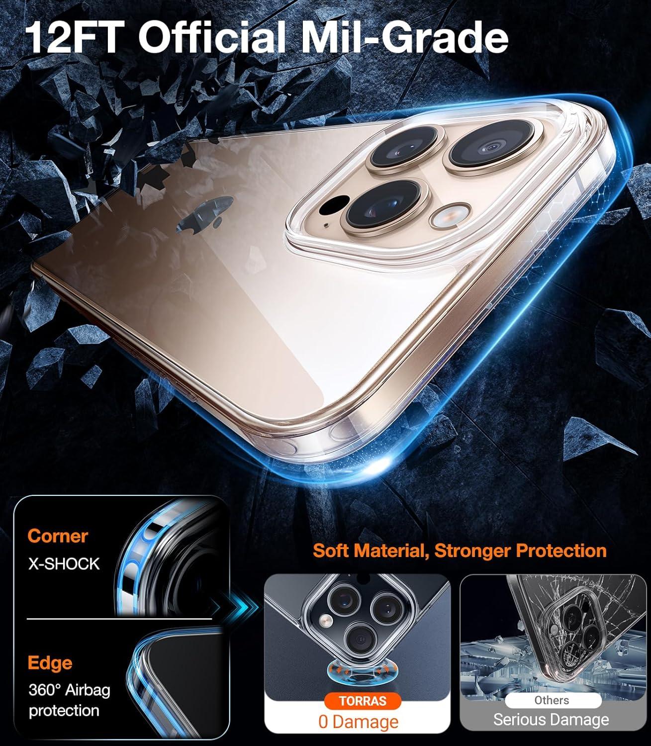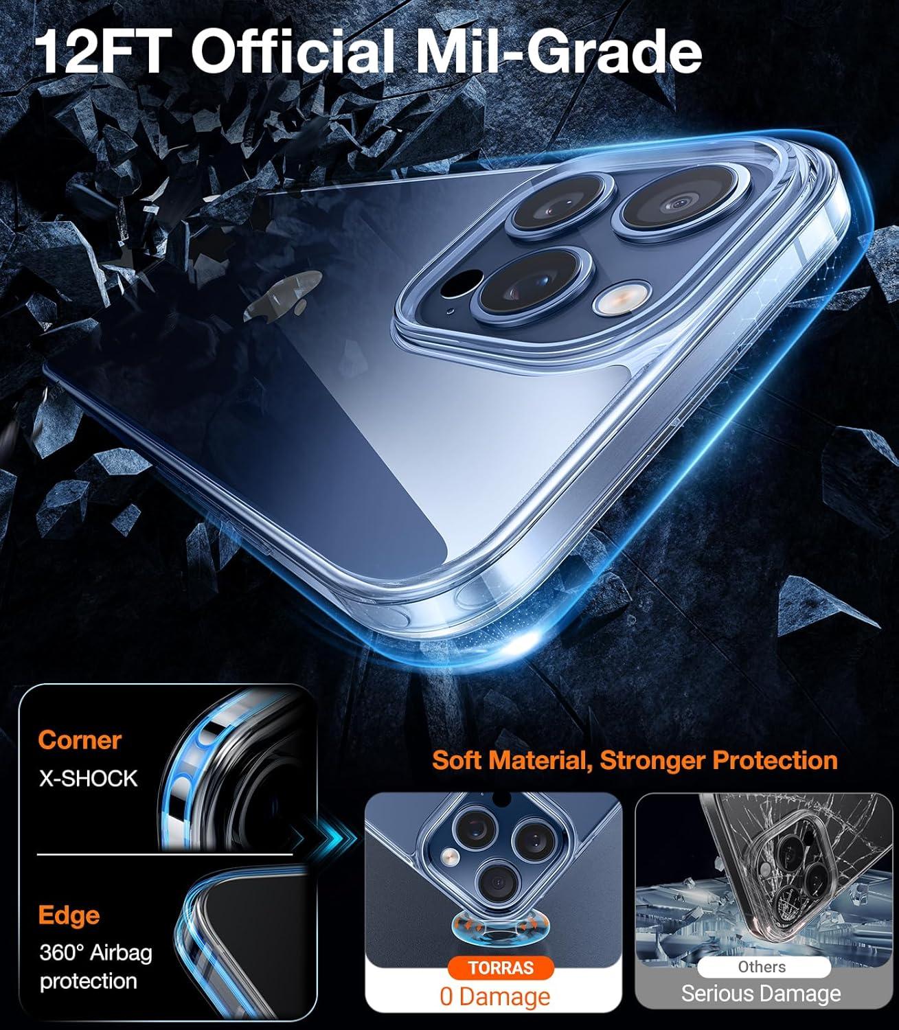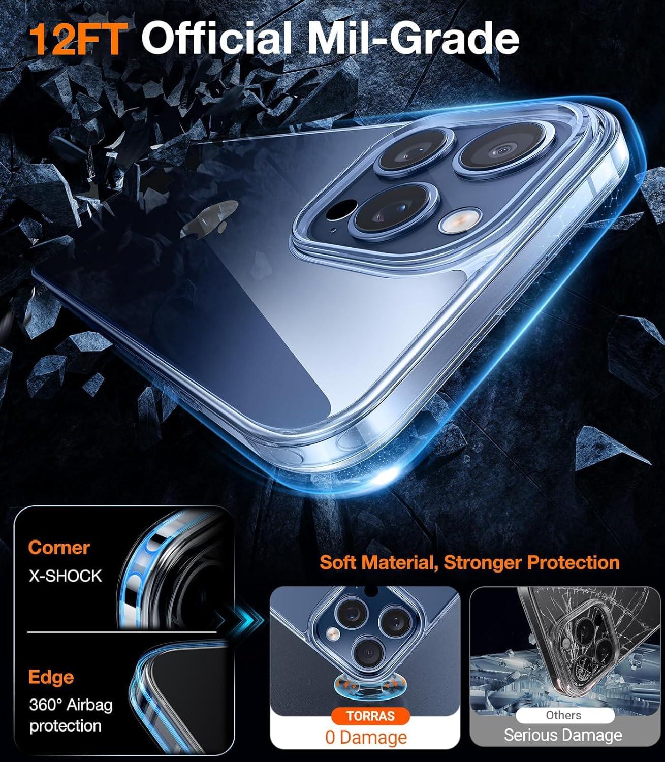 [Upgraded Protection]: This clear phone case for iPhone 13 Pro Max is equipped with 2nd gen X-SHOCK anti-collision airbags technology to absorb and disperse severe shocks, which absorbs shock and impacts of up to 50.16 Mpa. The 1.3mm raised edges will keep your screen and camera from getting scratched whenever you place the iPhone 13 Pro Max on flat surfaces